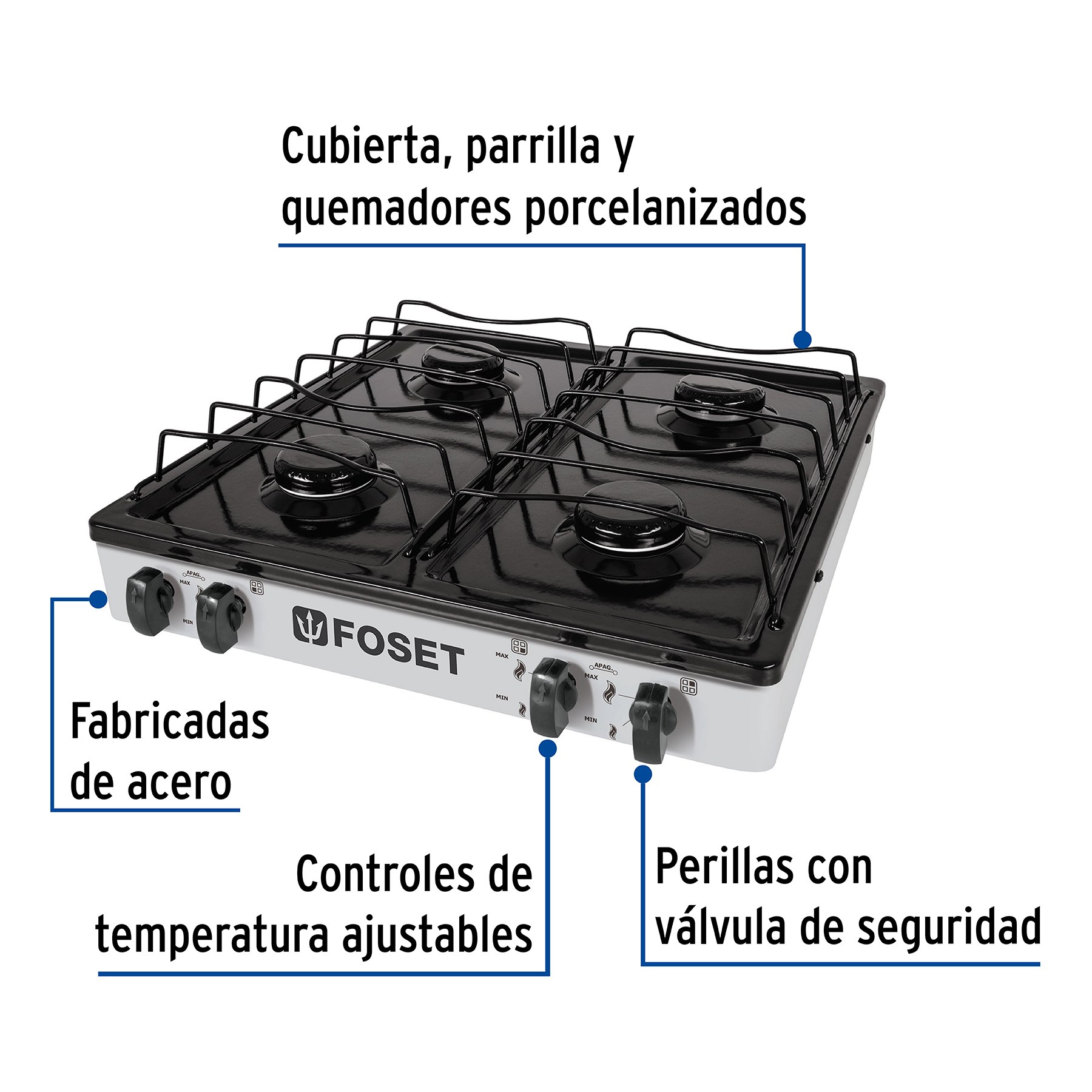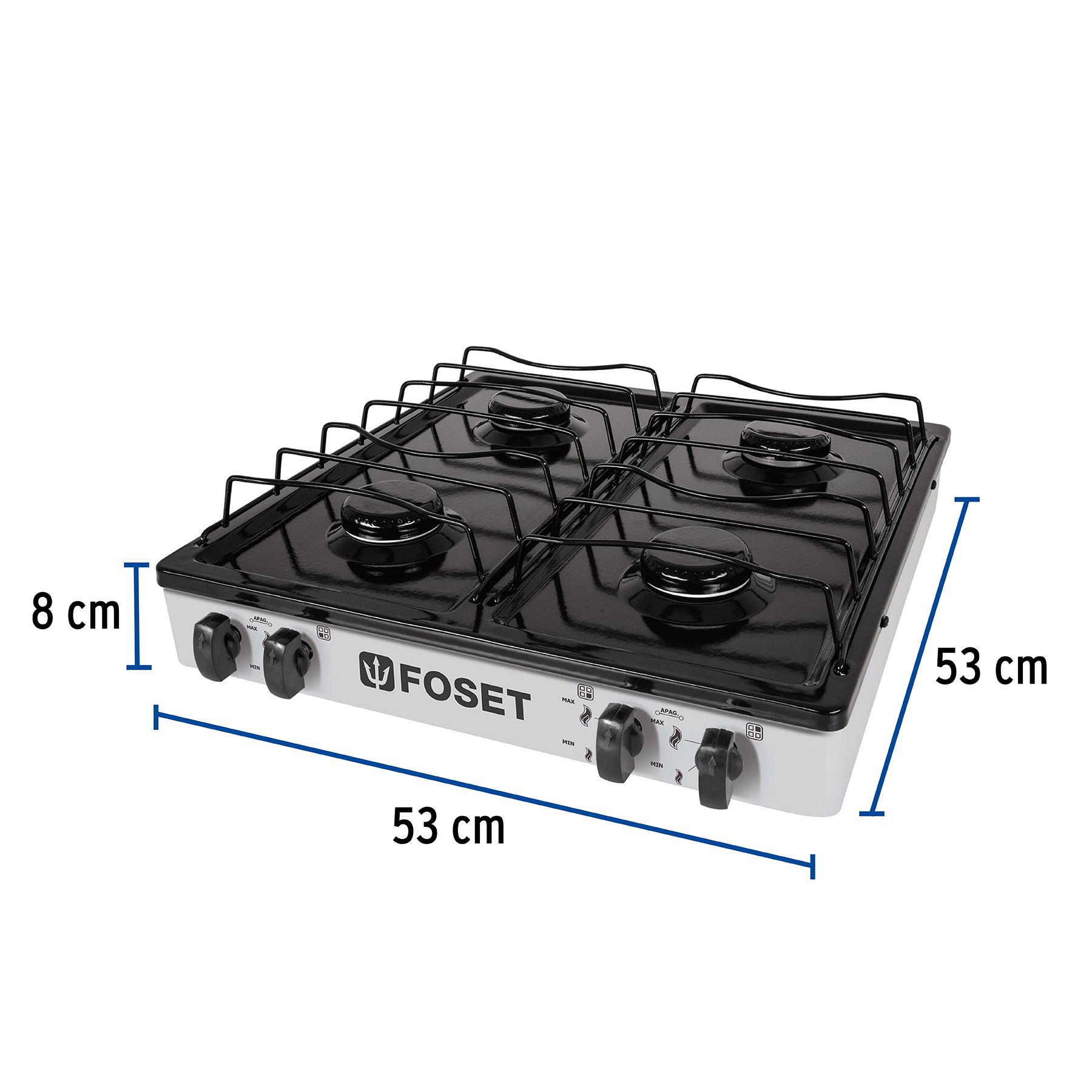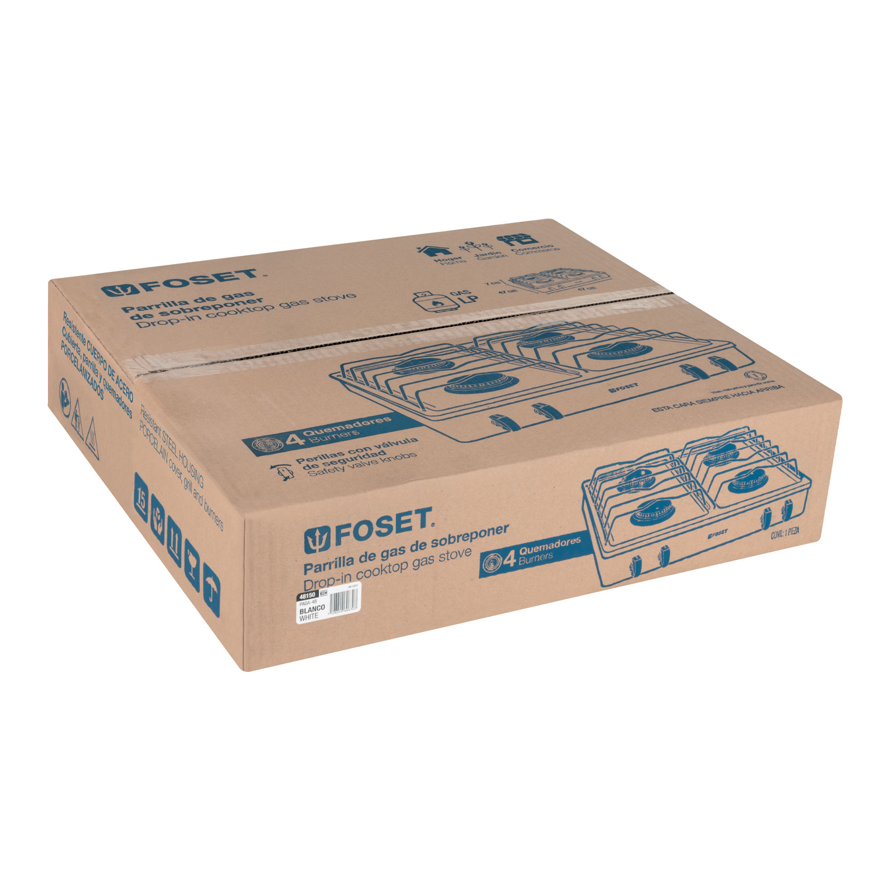 Parrilla de gas de sobreponer 4 quemadores, blanca, Foset