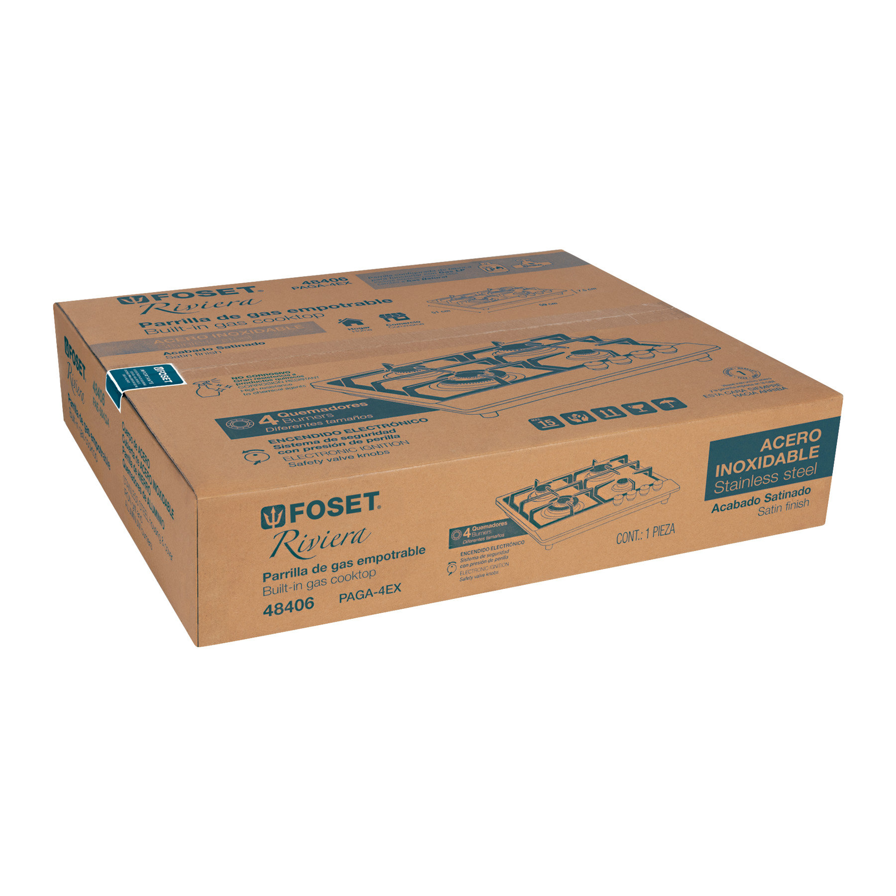 Parrilla gas empotrable 60cm, 4 quem, acero inox, Riviera