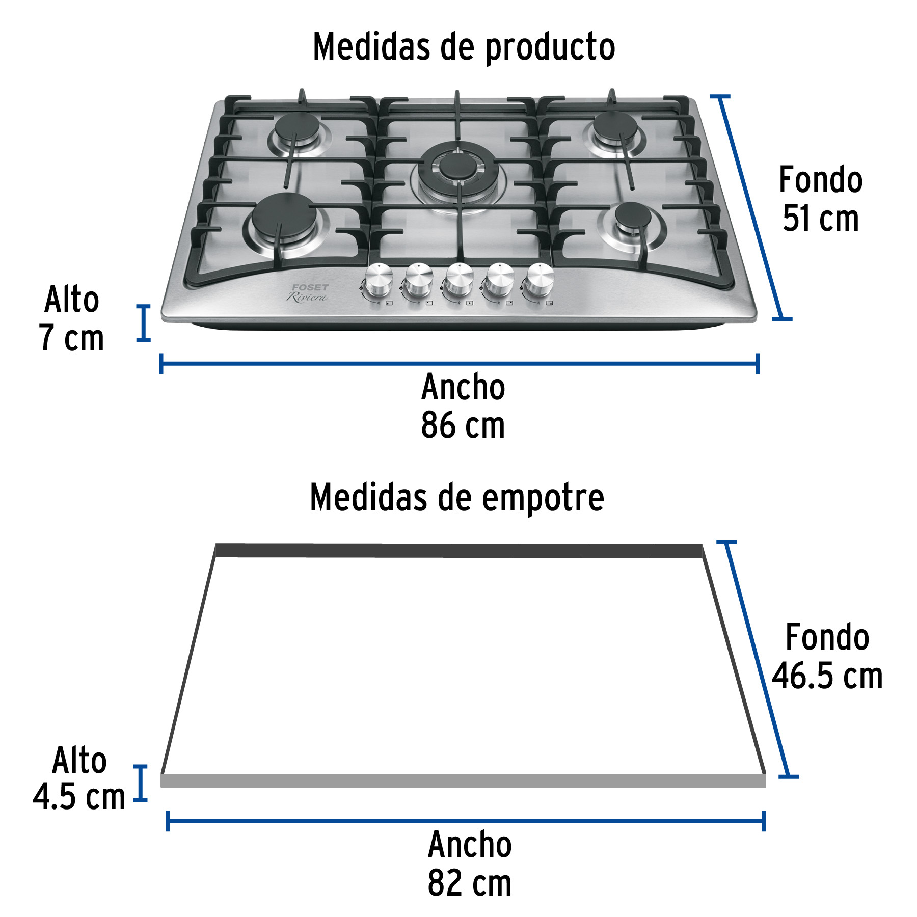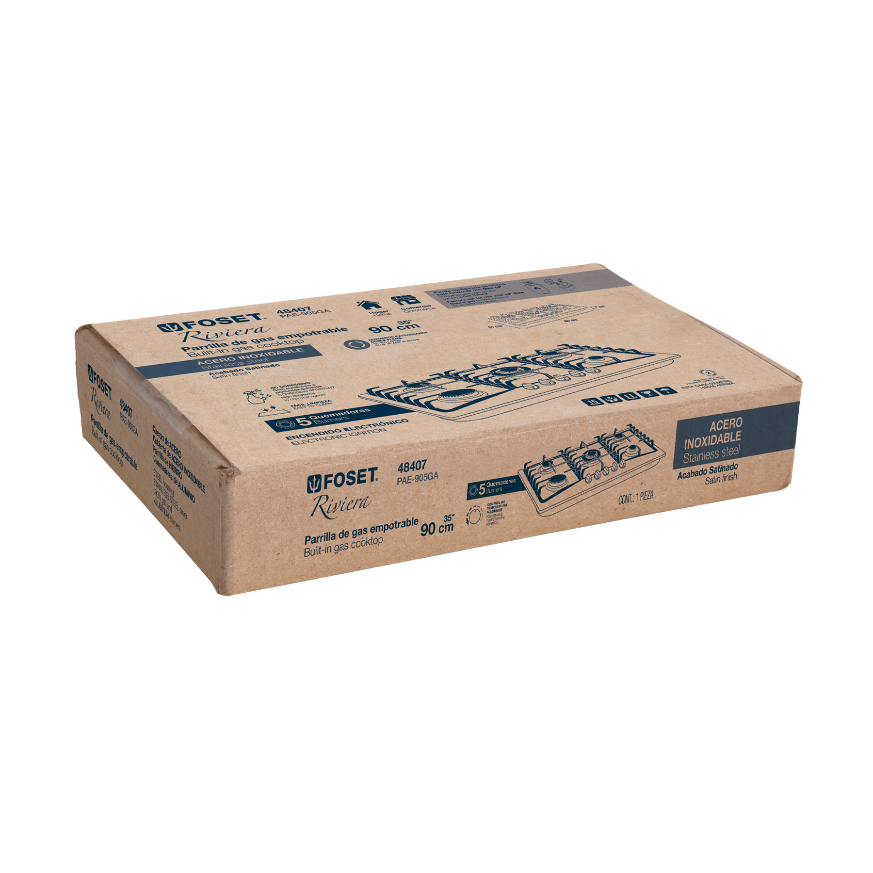 Parrilla gas empotrable 90cm, 5 quem, acero inox, Riviera