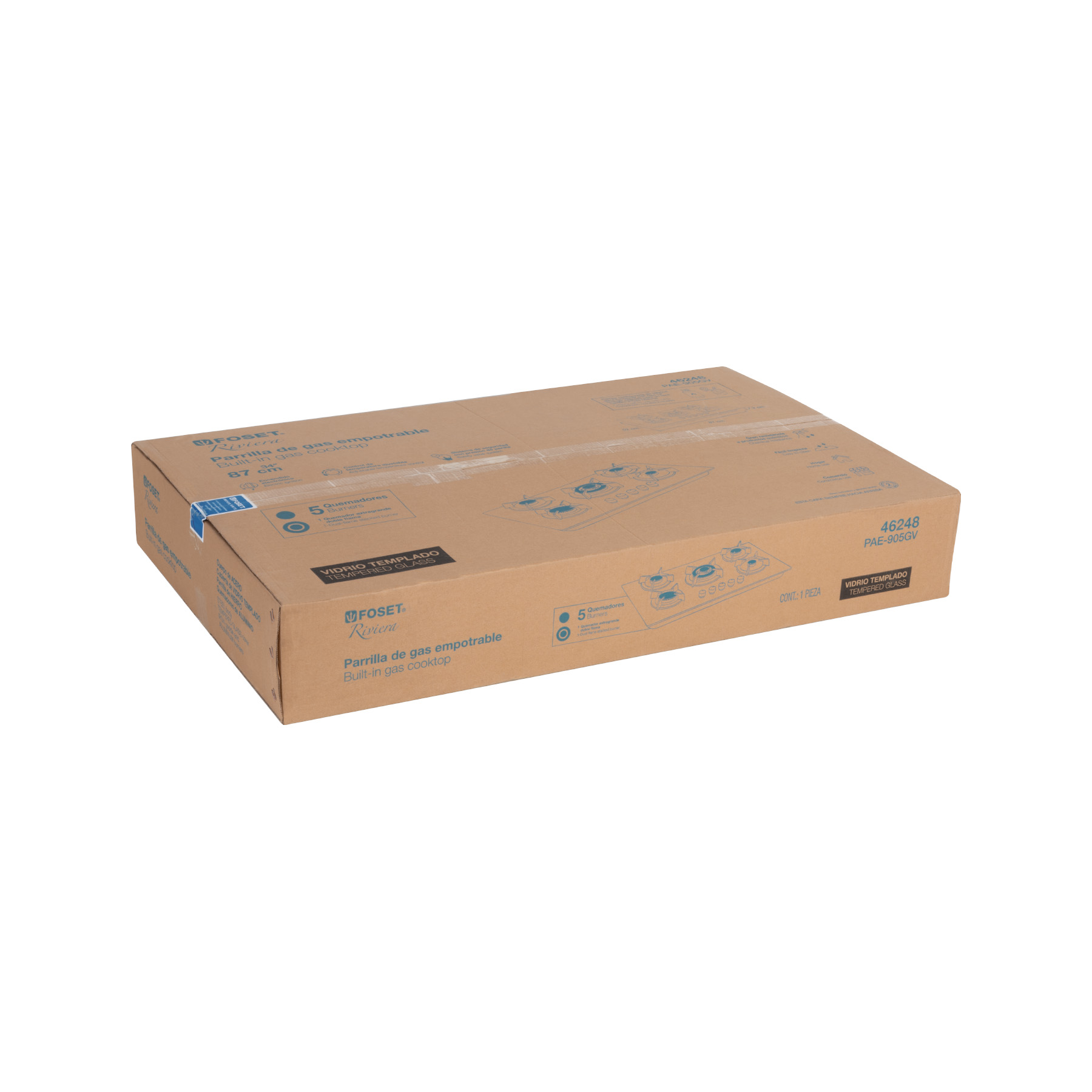 Parrilla gas empotrable 90cm, 5 quem, vidrio negro, Riviera
