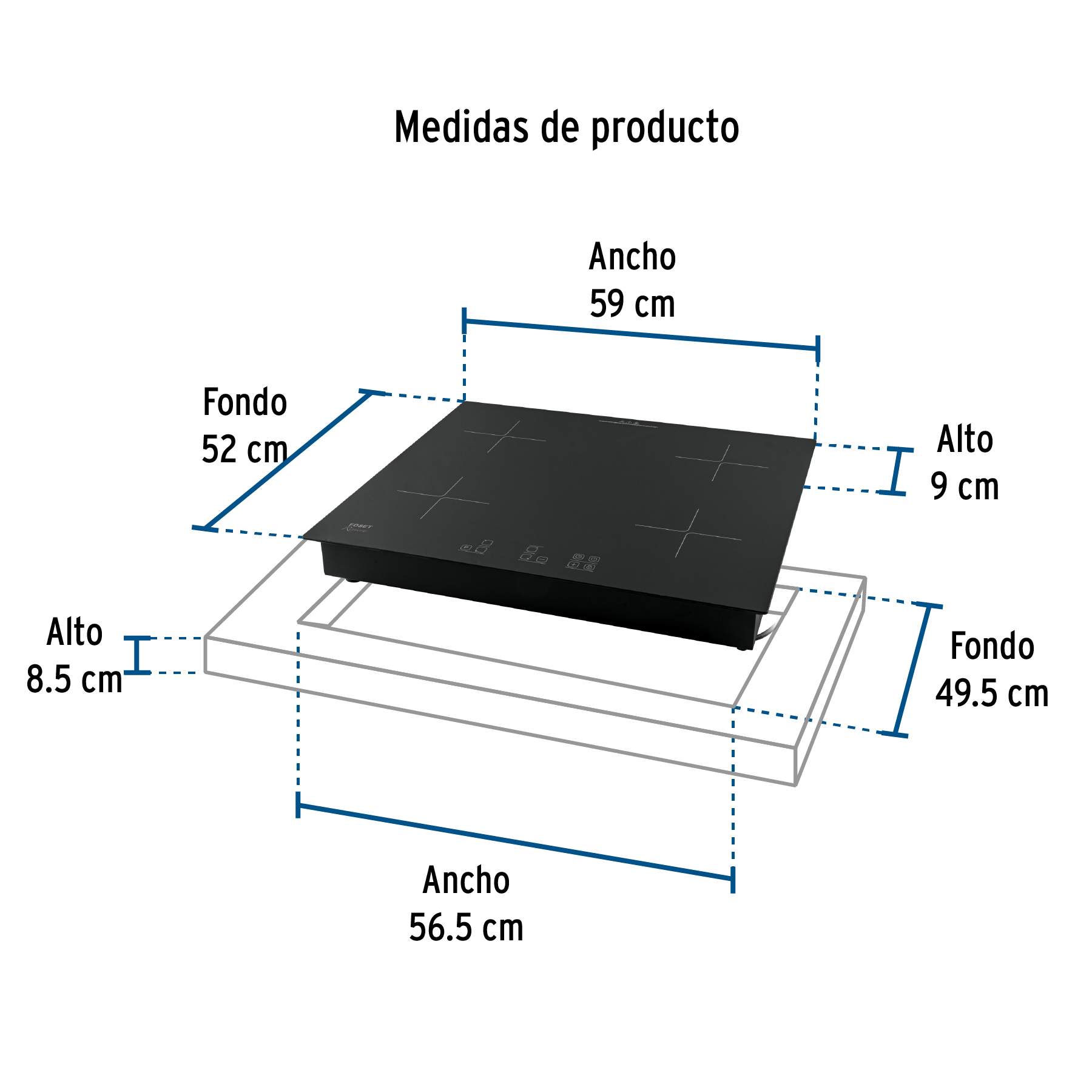 Parrilla inducción empotrable 60cm, 4 quem, vidrio, Riviera