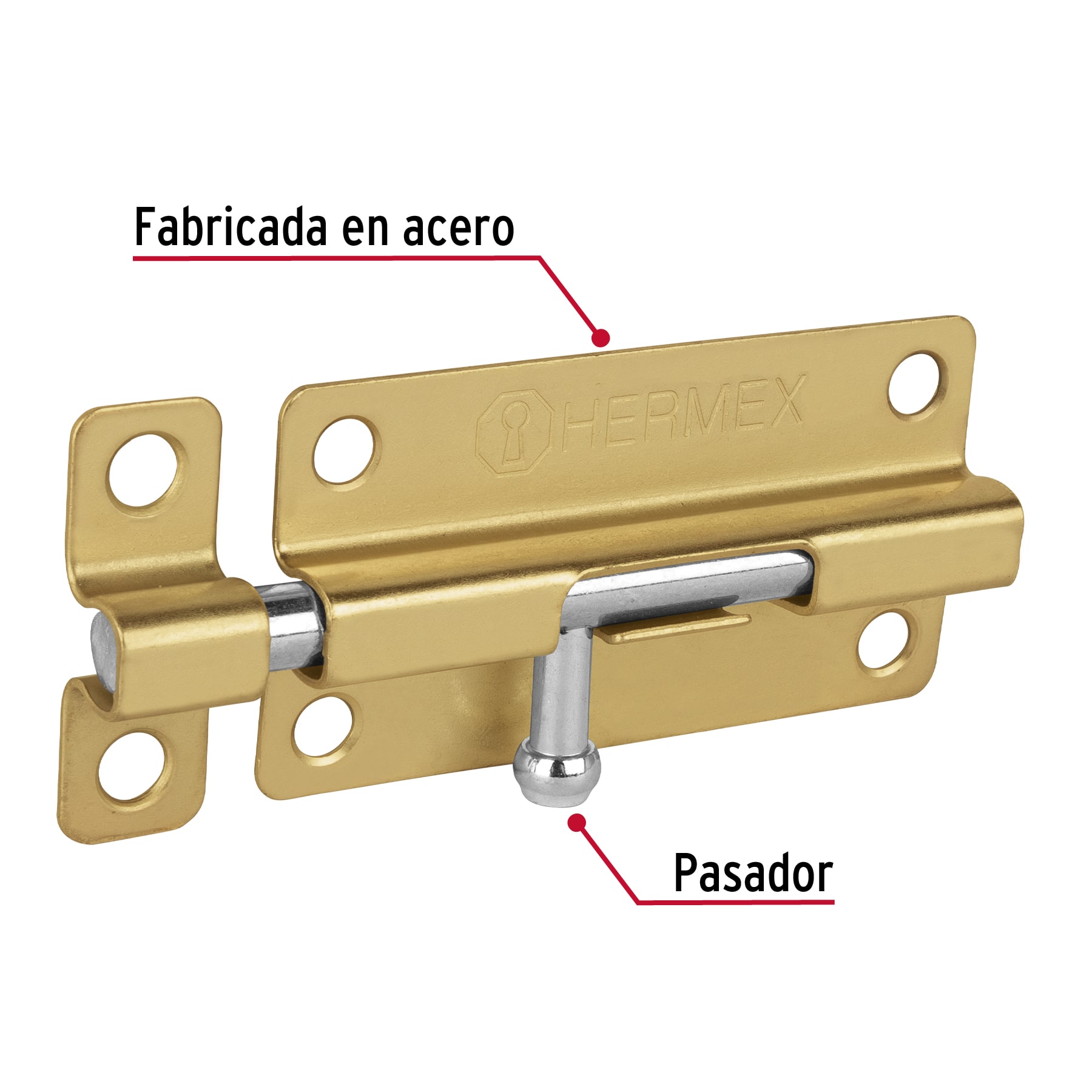 Pasador de barril de acero latón 4′, HERMEX