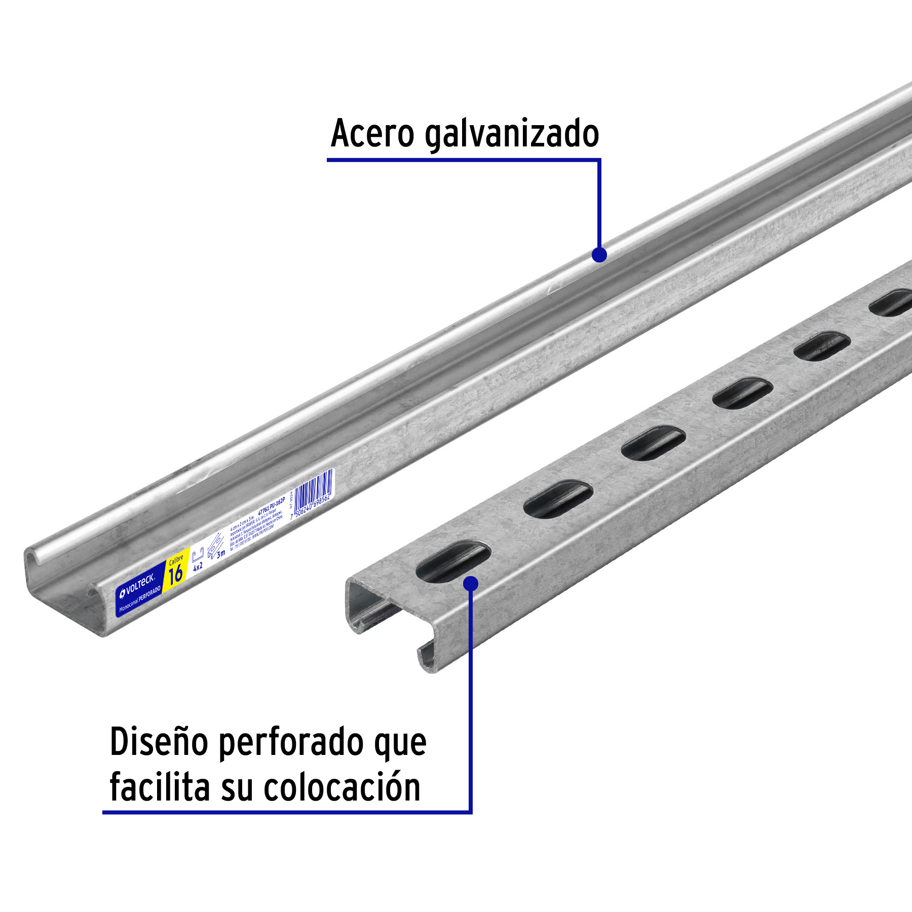 Perfil monocanal perforado de 3 m, 4 x 2 cm cal. 16, VOLTECK