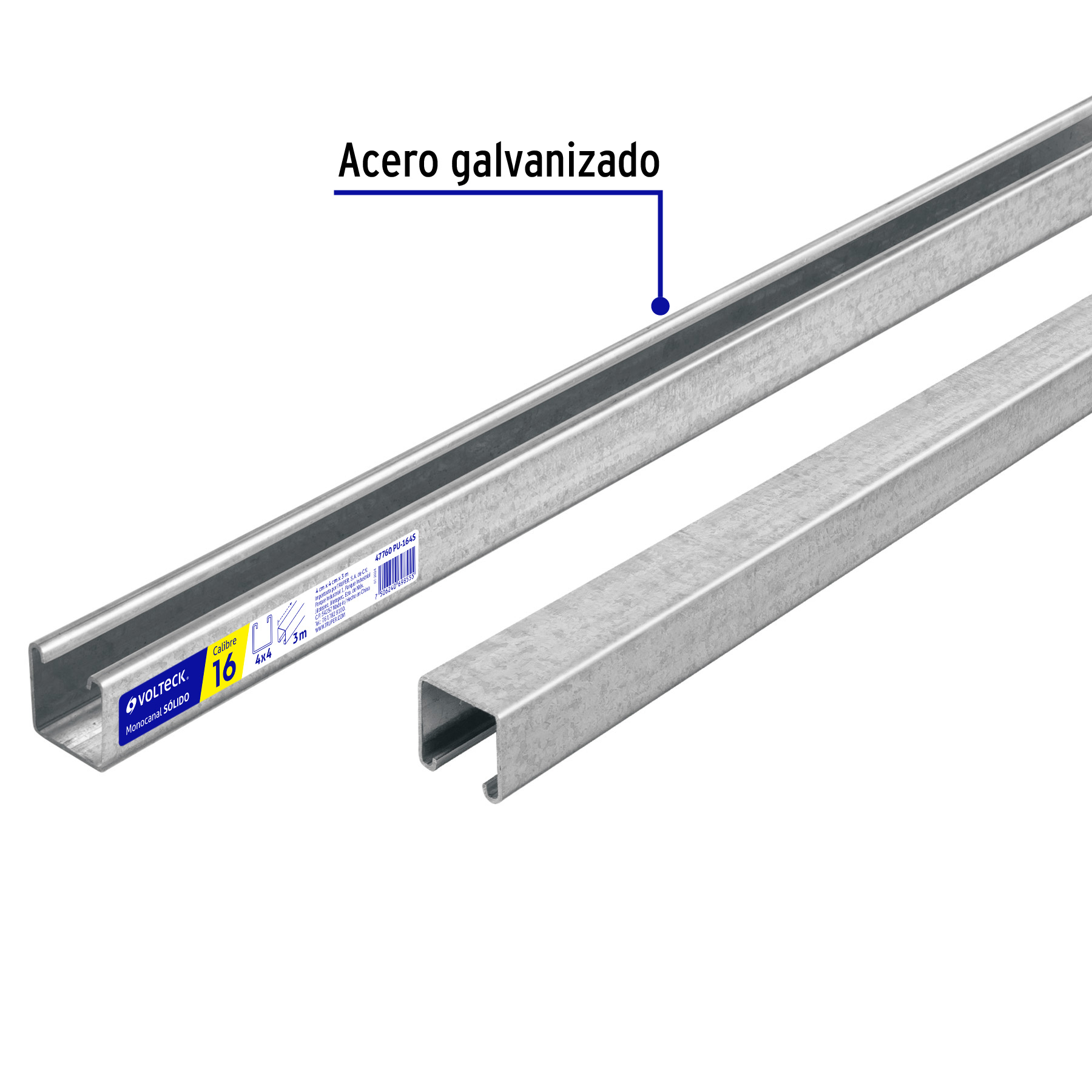 Perfil monocanal sólido de 3 m, 4 x 4 cm cal. 16, VOLTECK