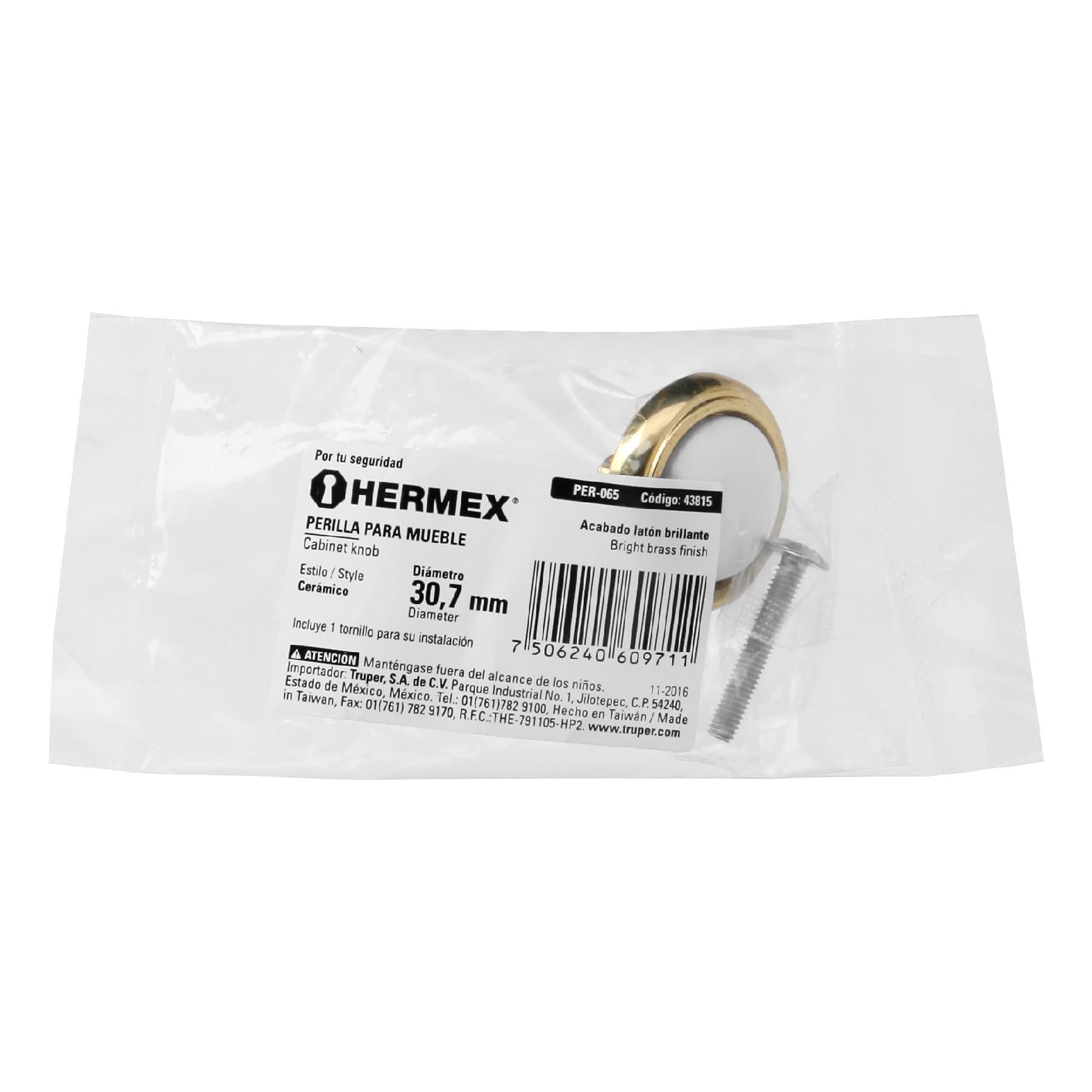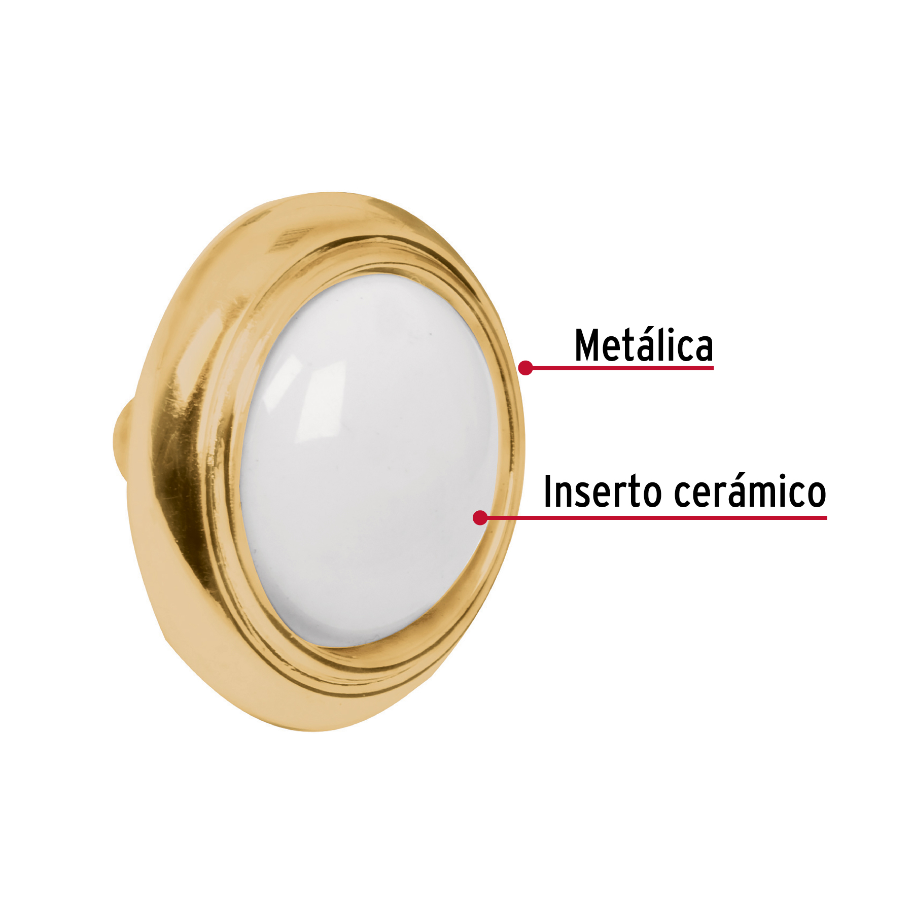 Perilla metálica, latón brillante, inserto cerámico, HERMEX