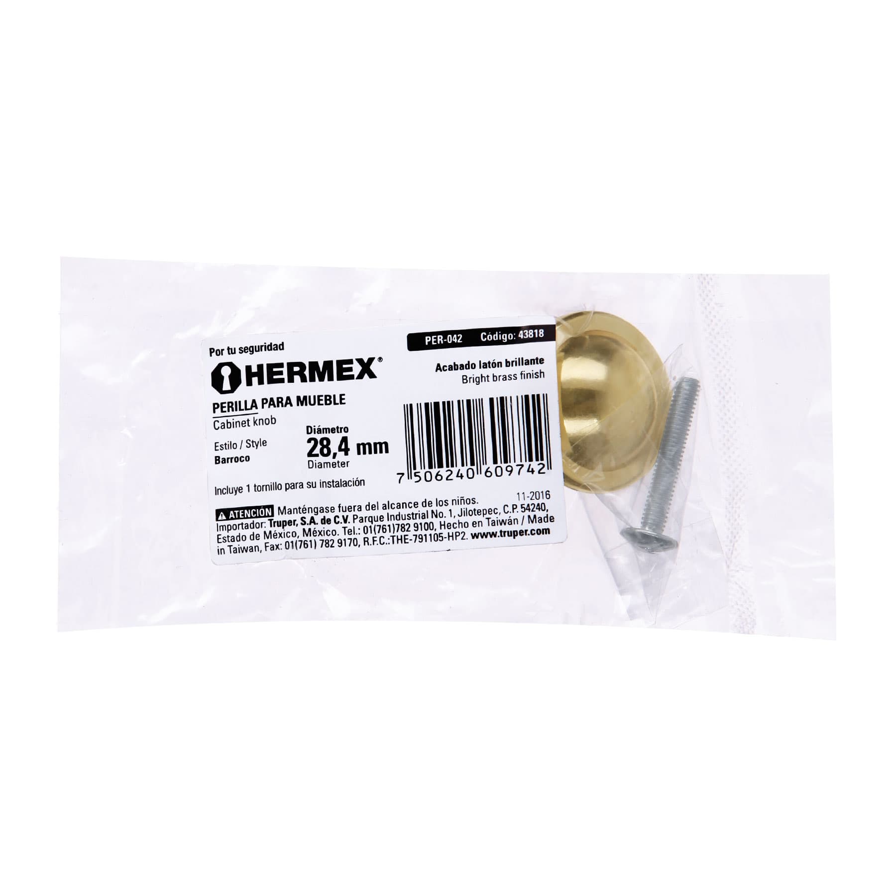 Perilla metálica estilo ‘Barroco’, latón brillante, HERMEX