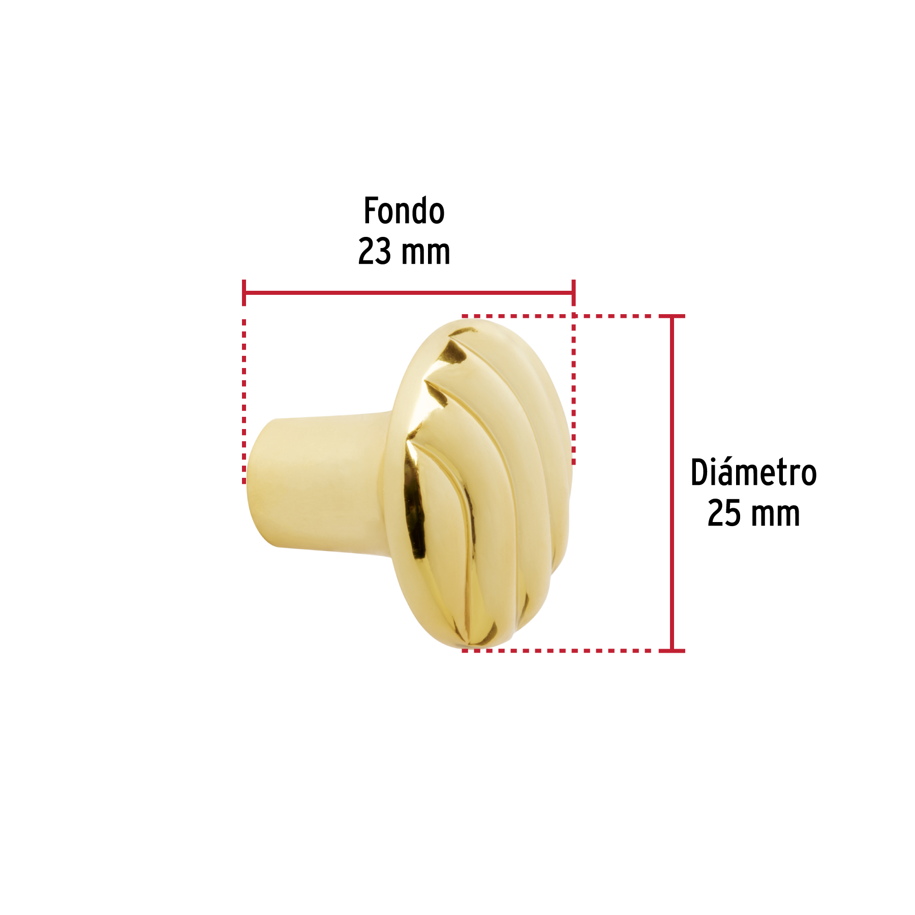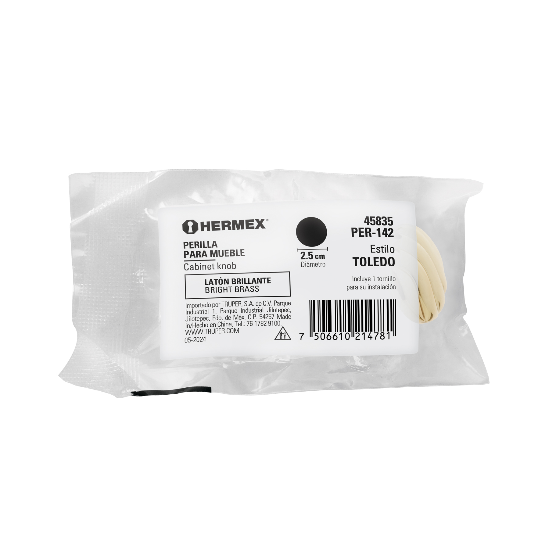 Perilla metálica estilo ‘Toledo’, latón brillante, HERMEX