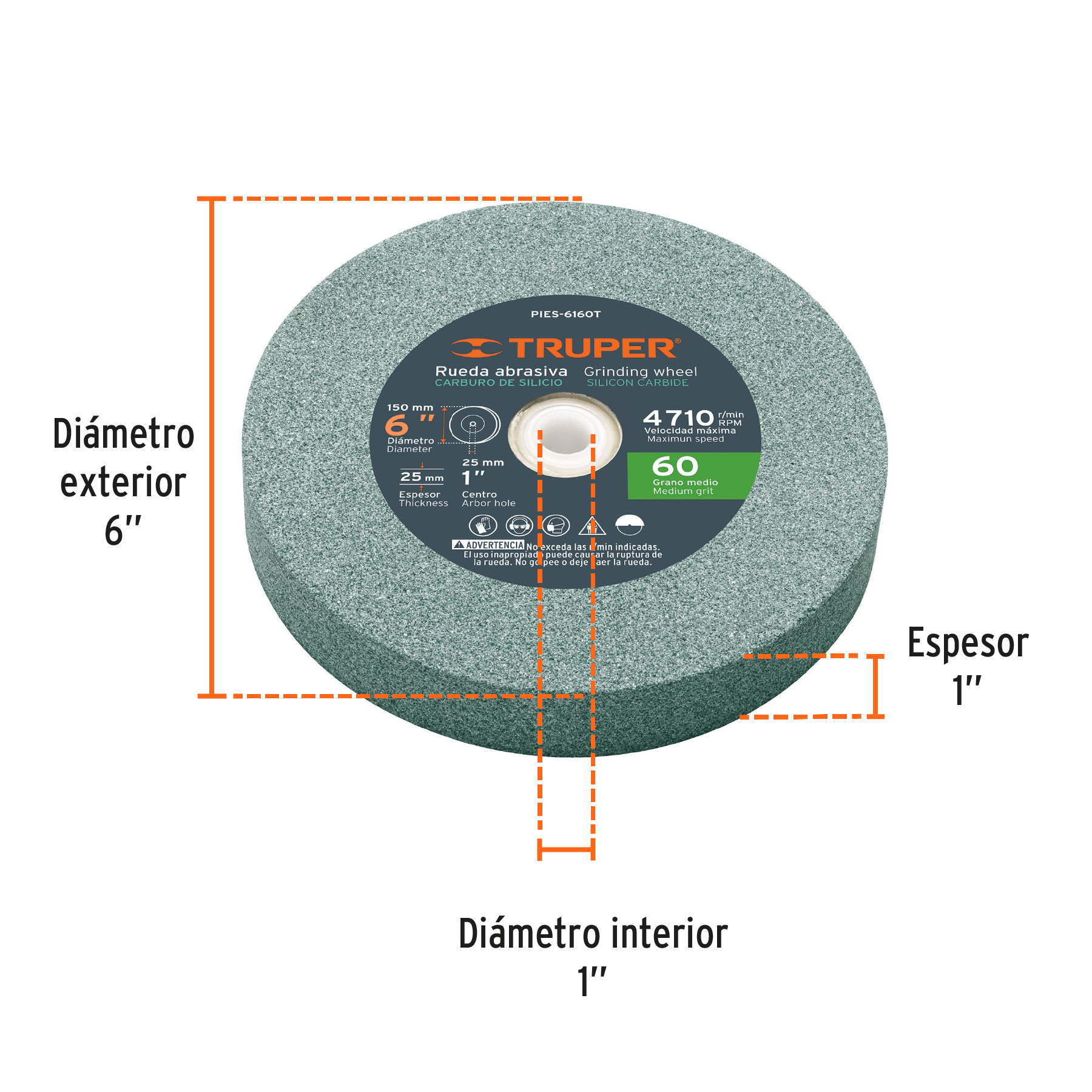 Rueda abrasiva p/esmeril 6’x25mm, carburo silicio, grano 60