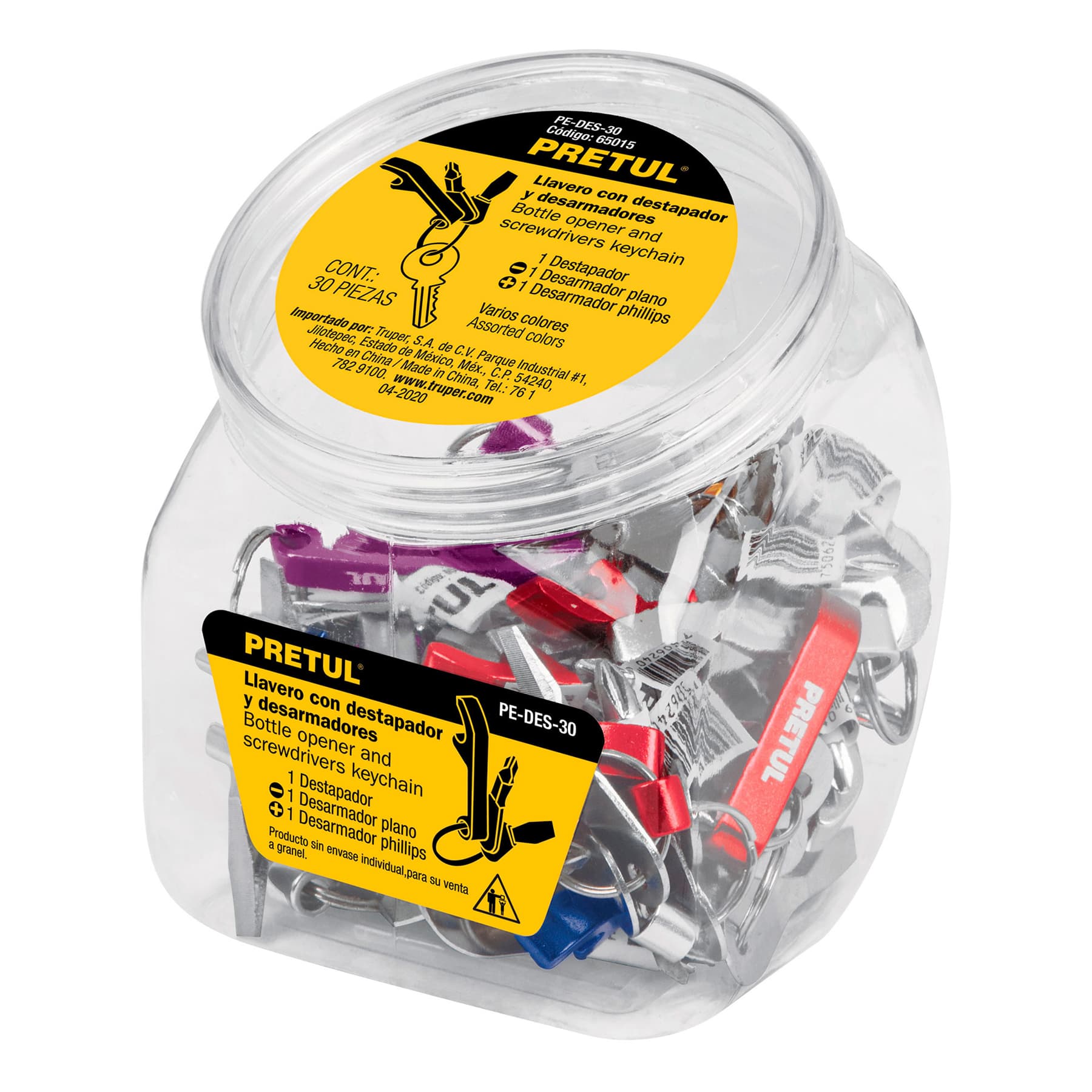 Pieza de llavero tipo desarmador y destapador, pecera 30 pz