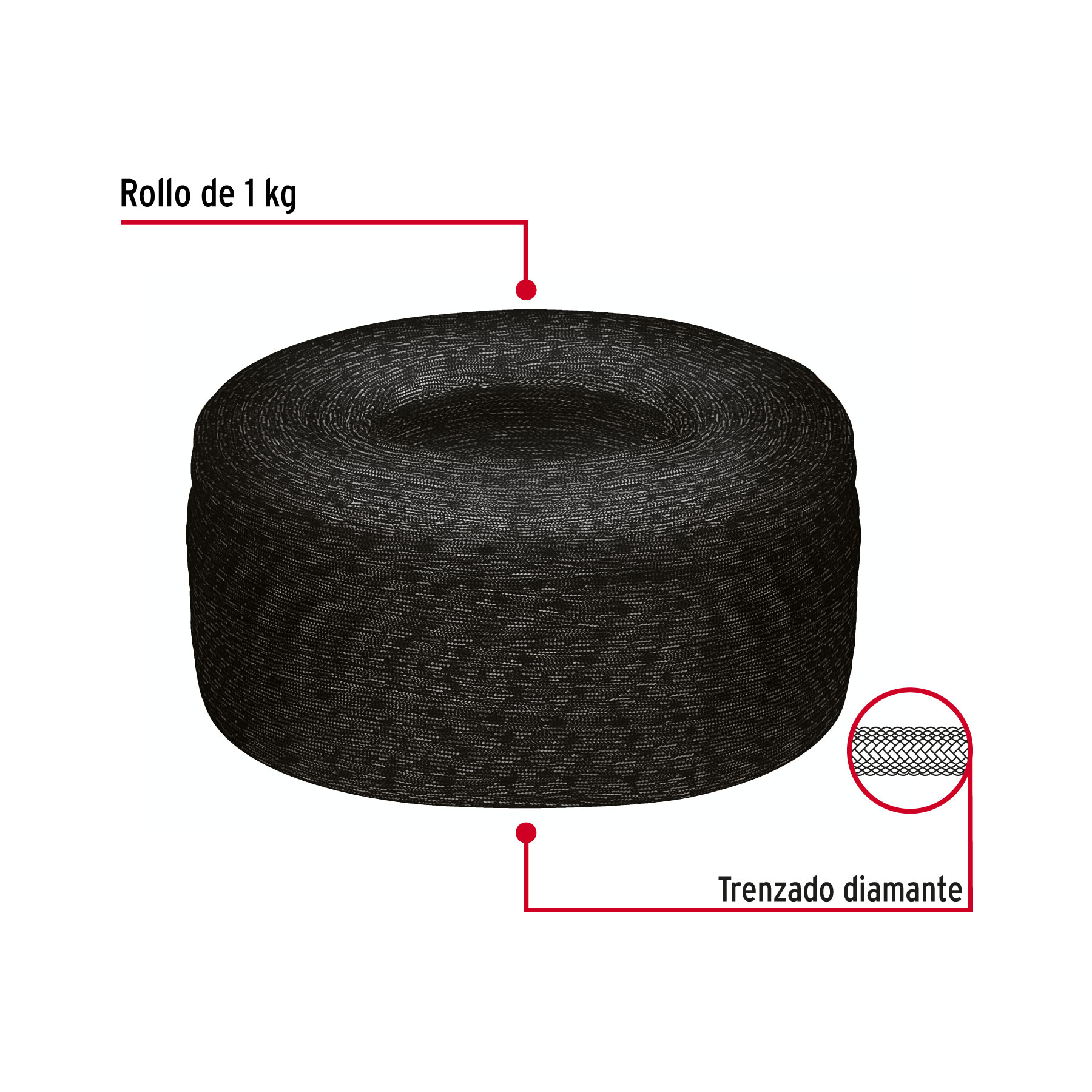 Piola de nylon paracord de 4mm, rollo, negro, 1kg, FIERO