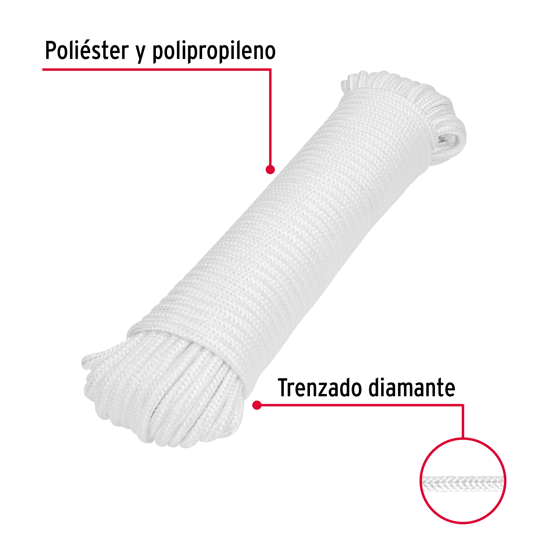 Piola de poliéster diamante de 6mmx30m blanca, madeja, FIERO