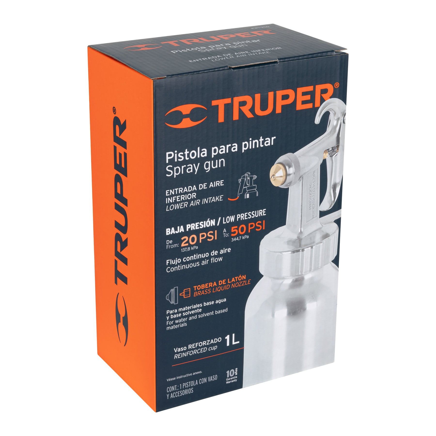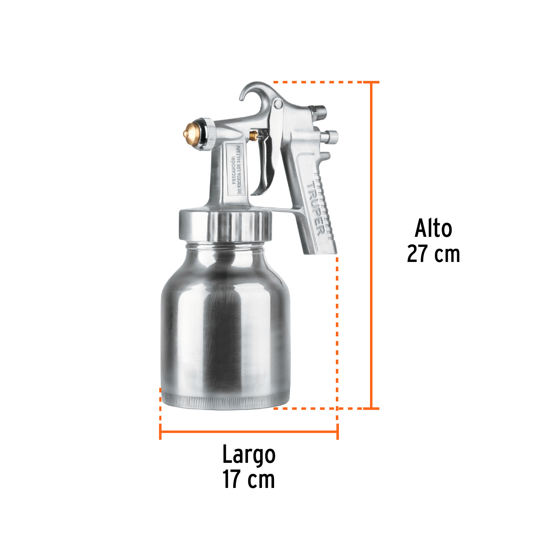 Empaque de retención de silicón para mayor vida útil. Perilla para control de flujo de pintura. Boquillas y tobera de latón.