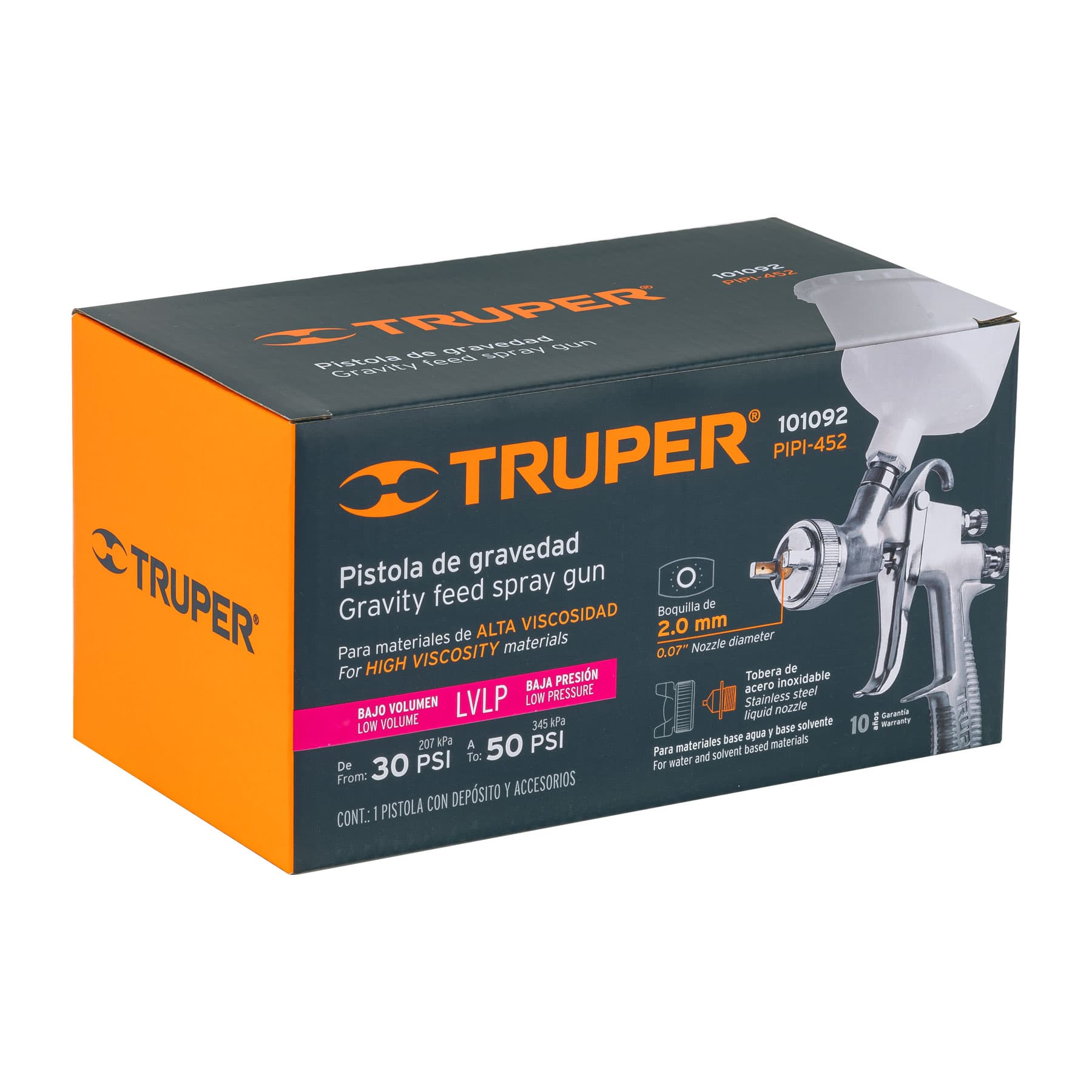 Pistola p/pintar gravedad LVLP vaso plástico, 2 mm, Truper