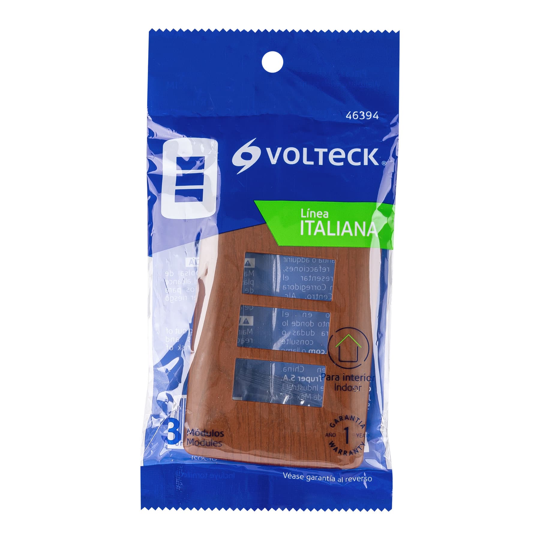 Placa 3 módulos de ABS, línea Italiana, acabado madera