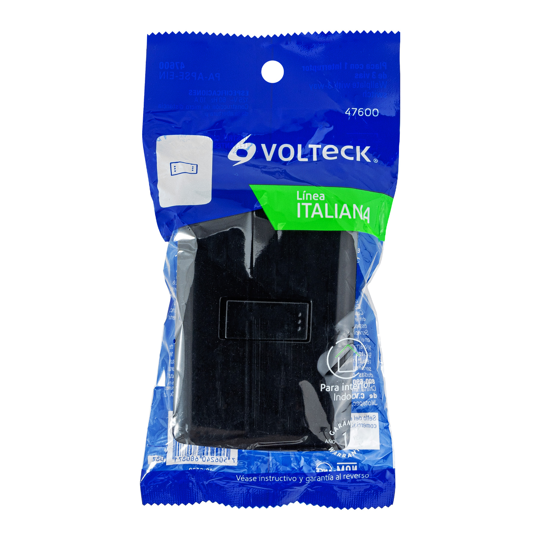 Placa armada 1 interruptor escalera, negro, línea Italiana