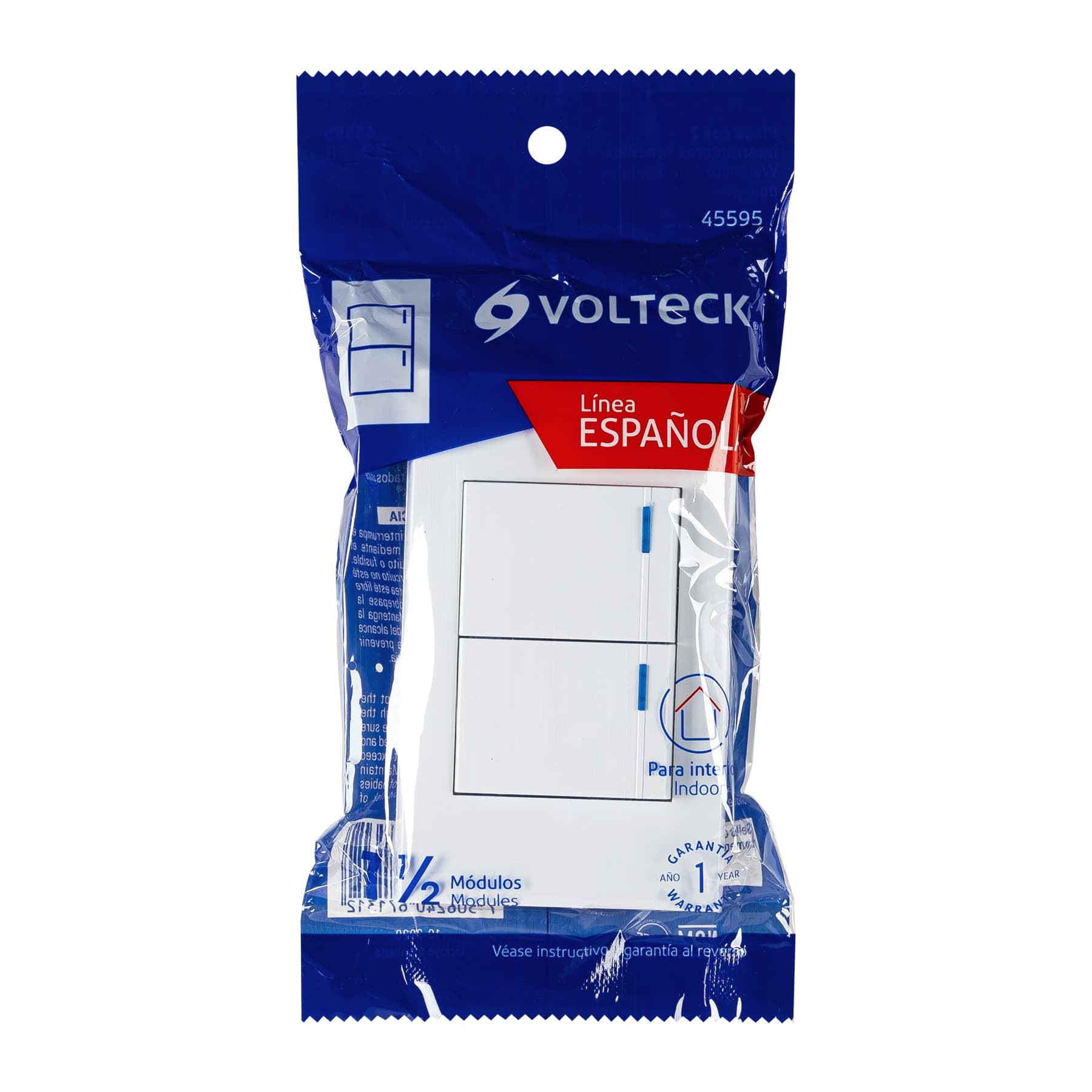 Placa armada 2 interruptores, 1.5 módulos, Española, blanco
