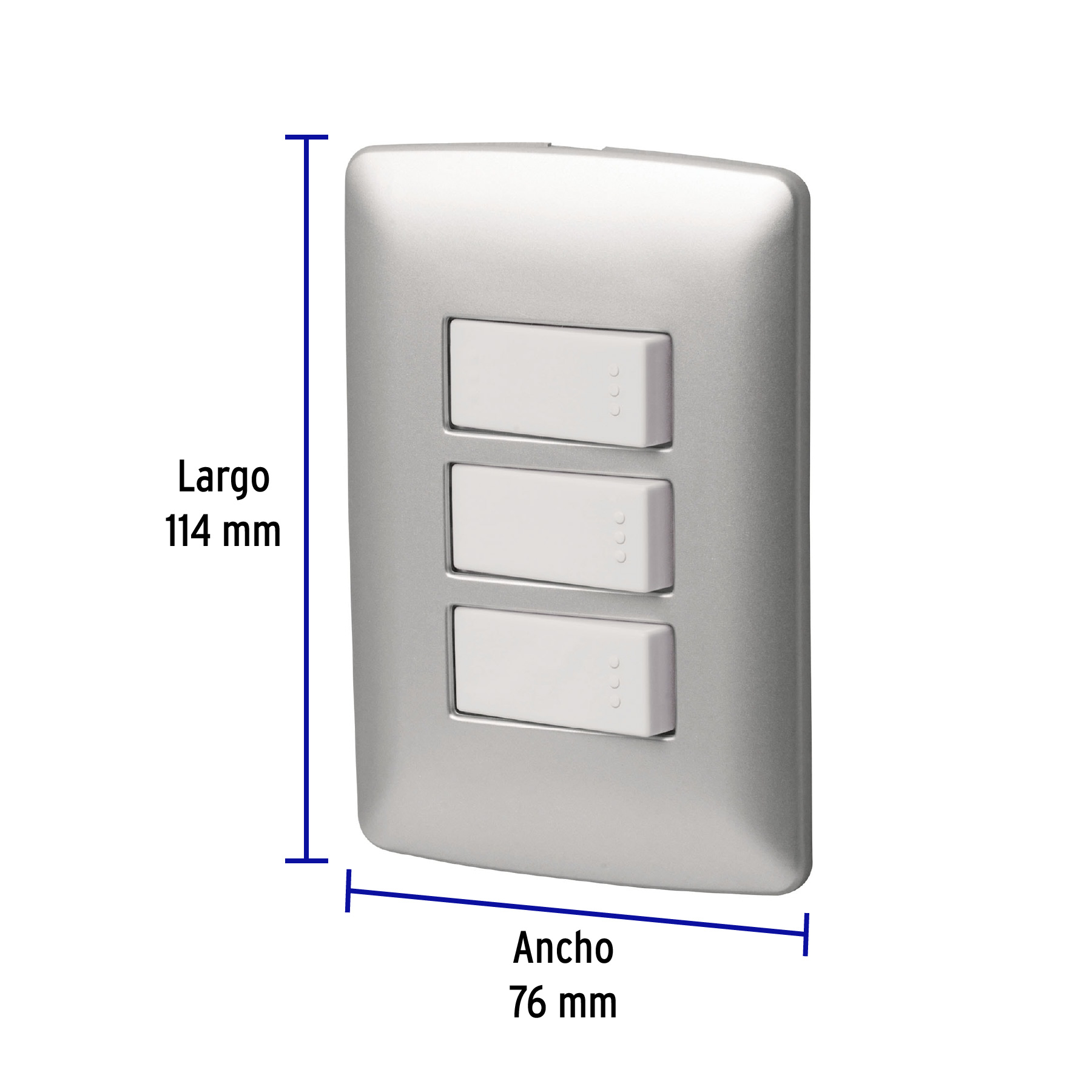 Placa armada 2 interruptores 1escalera, plata,línea Italiana