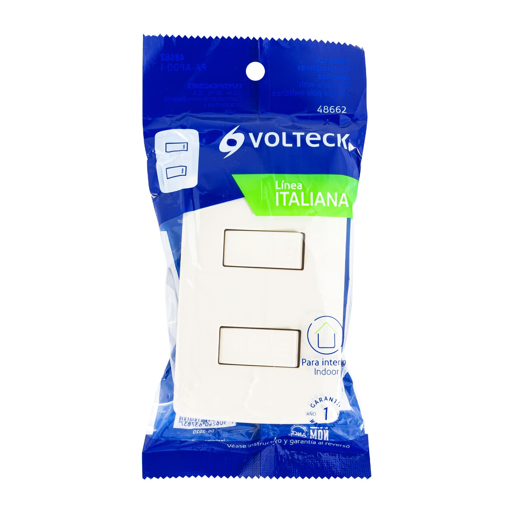 Placa armada 2 interruptores sencillos marfil,línea Italiana