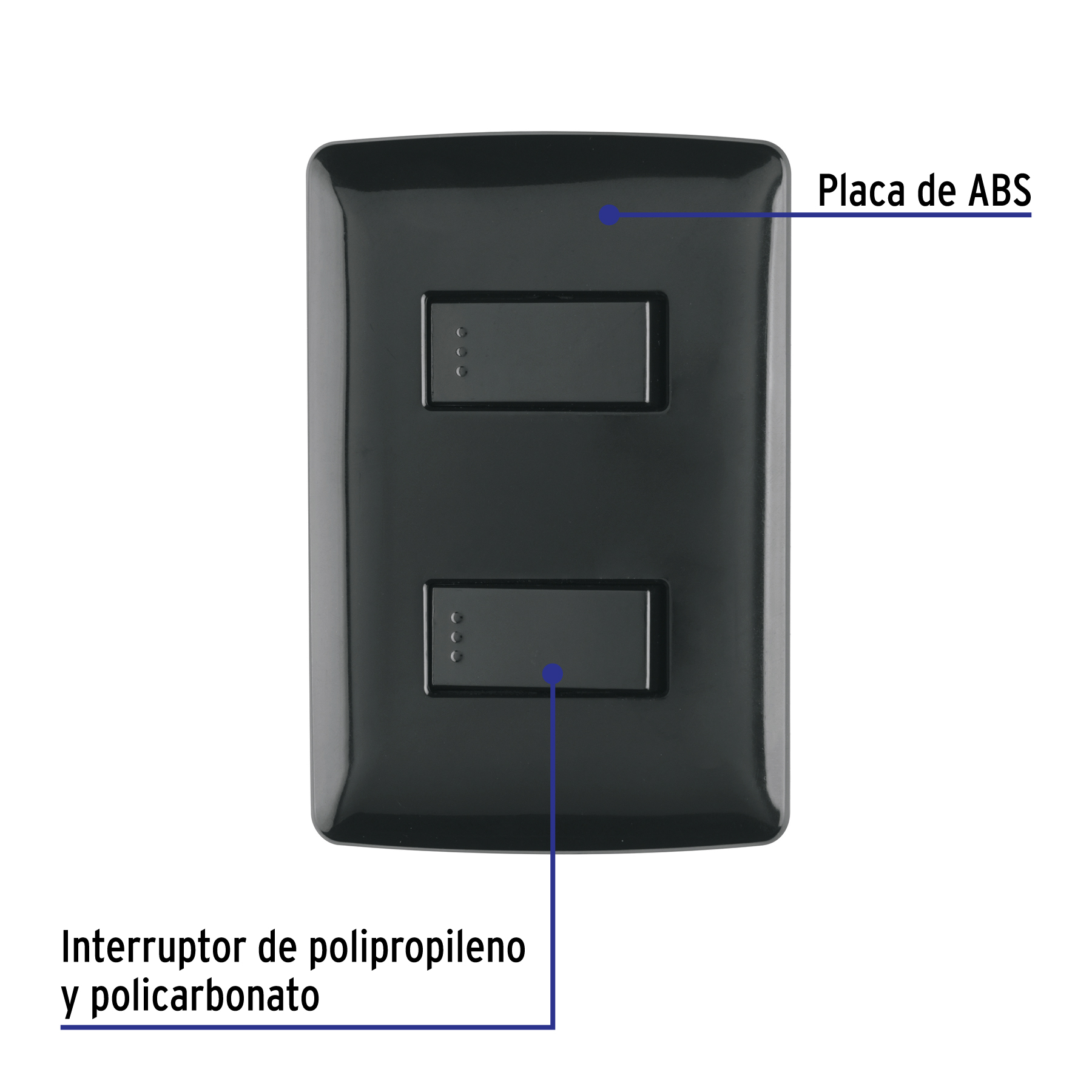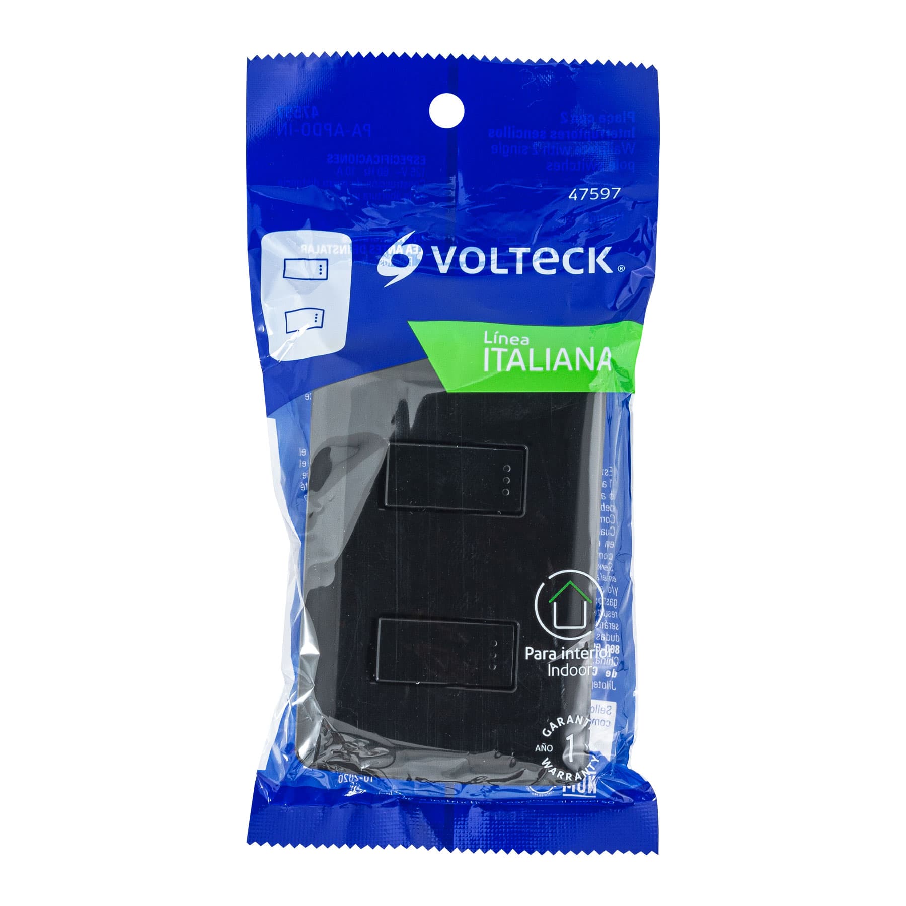 Placa armada, 2 interruptores sencillos,negro,línea Italiana