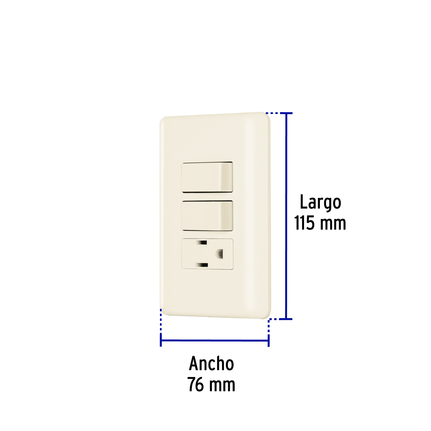 Placa armada 2 interruptores y contacto, marfil, Basic