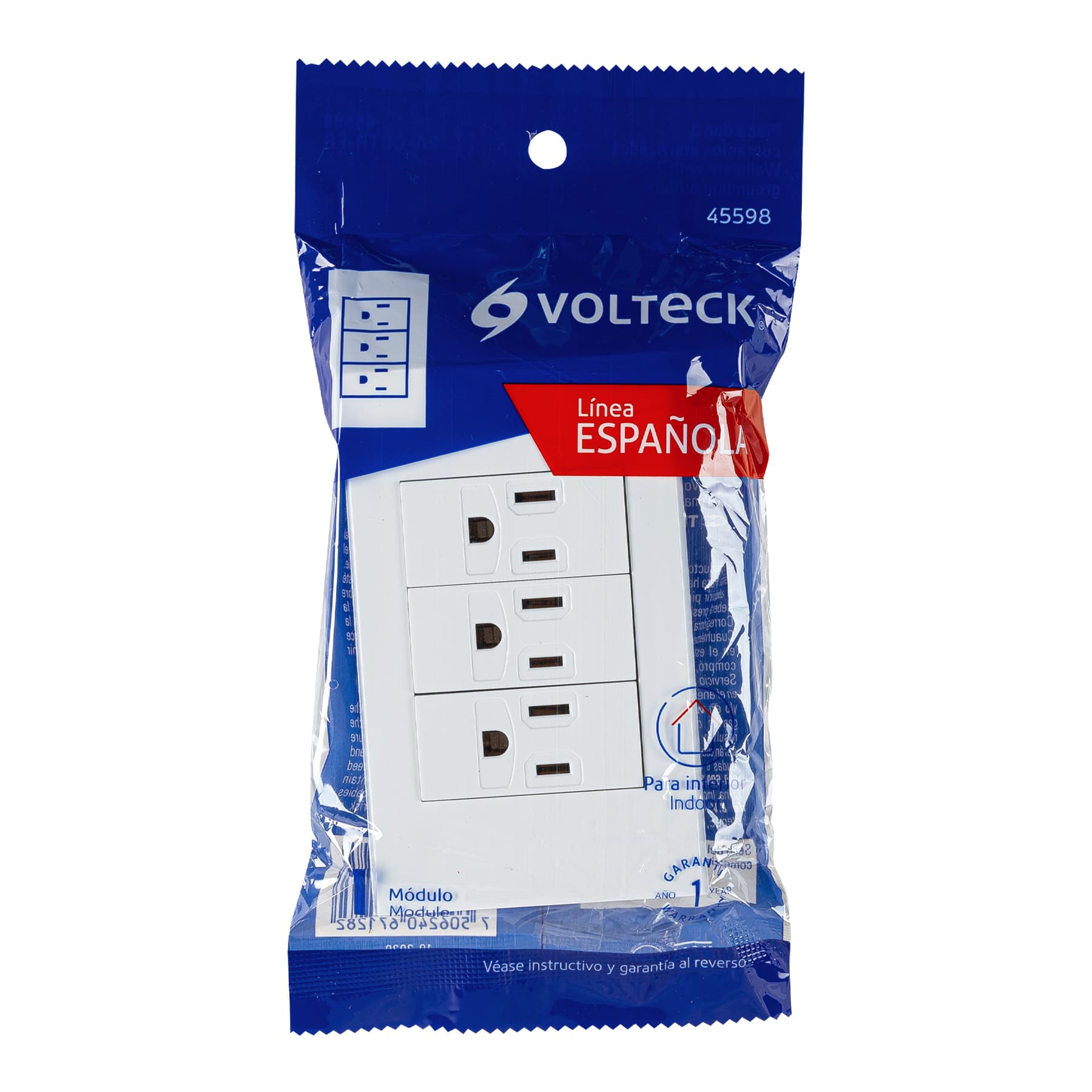 Placa armada 3 contactos, 1 módulo, Española, blanco