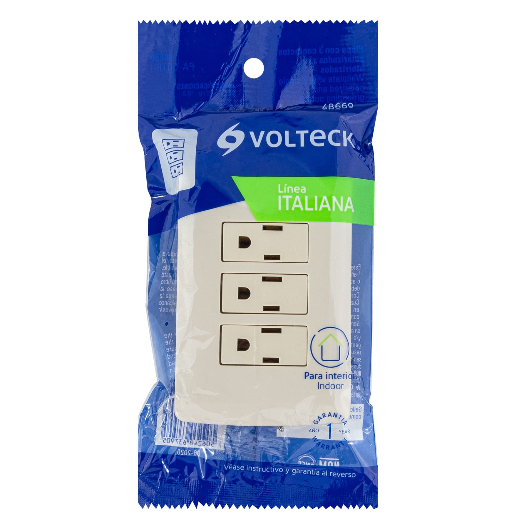 Placa armada 3 contactos aterrizados, marfil, línea Italiana