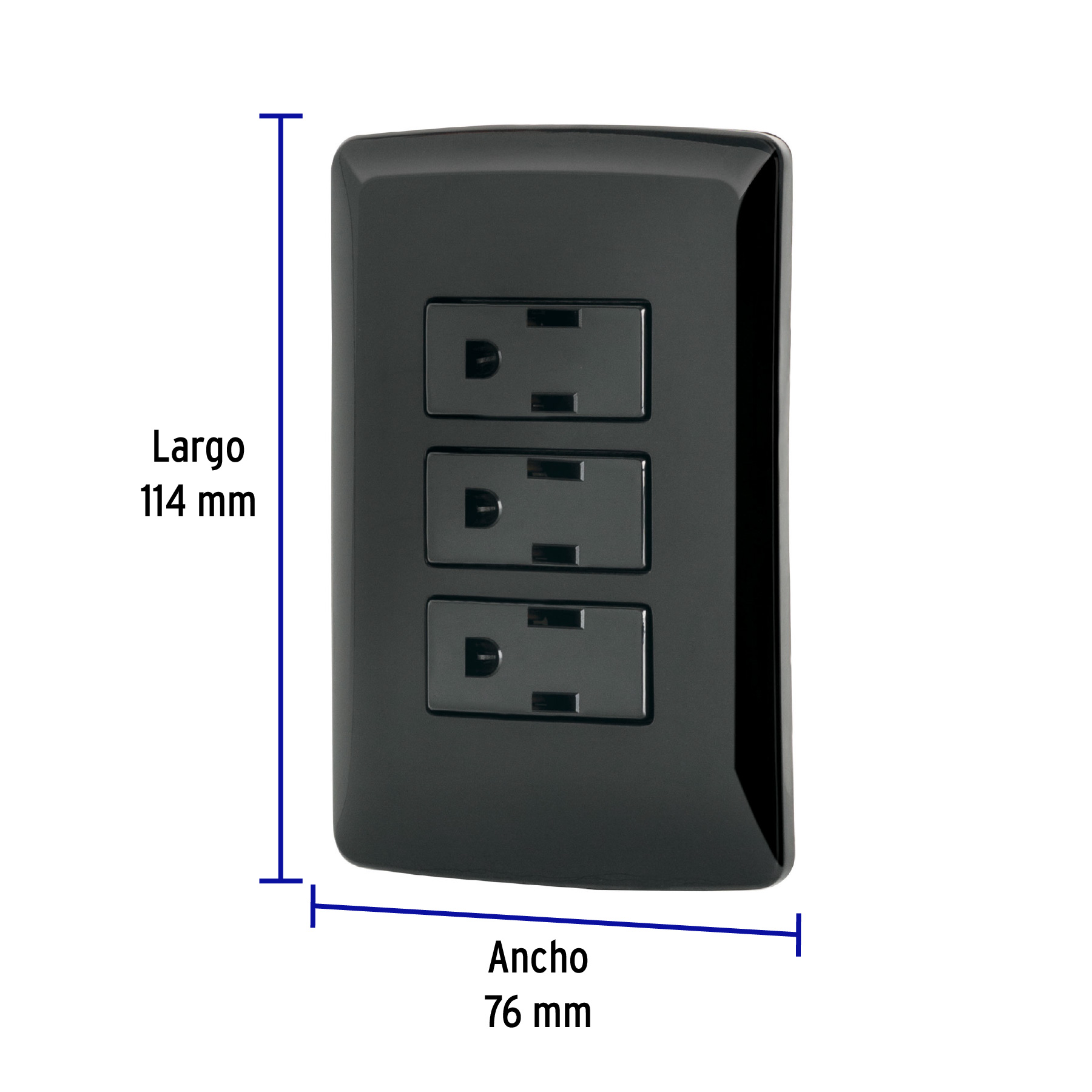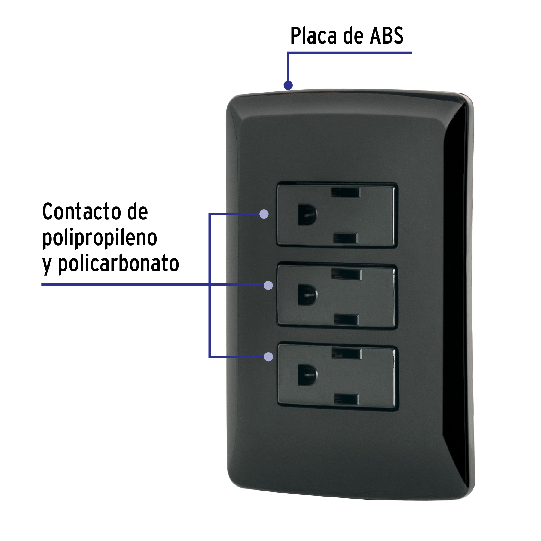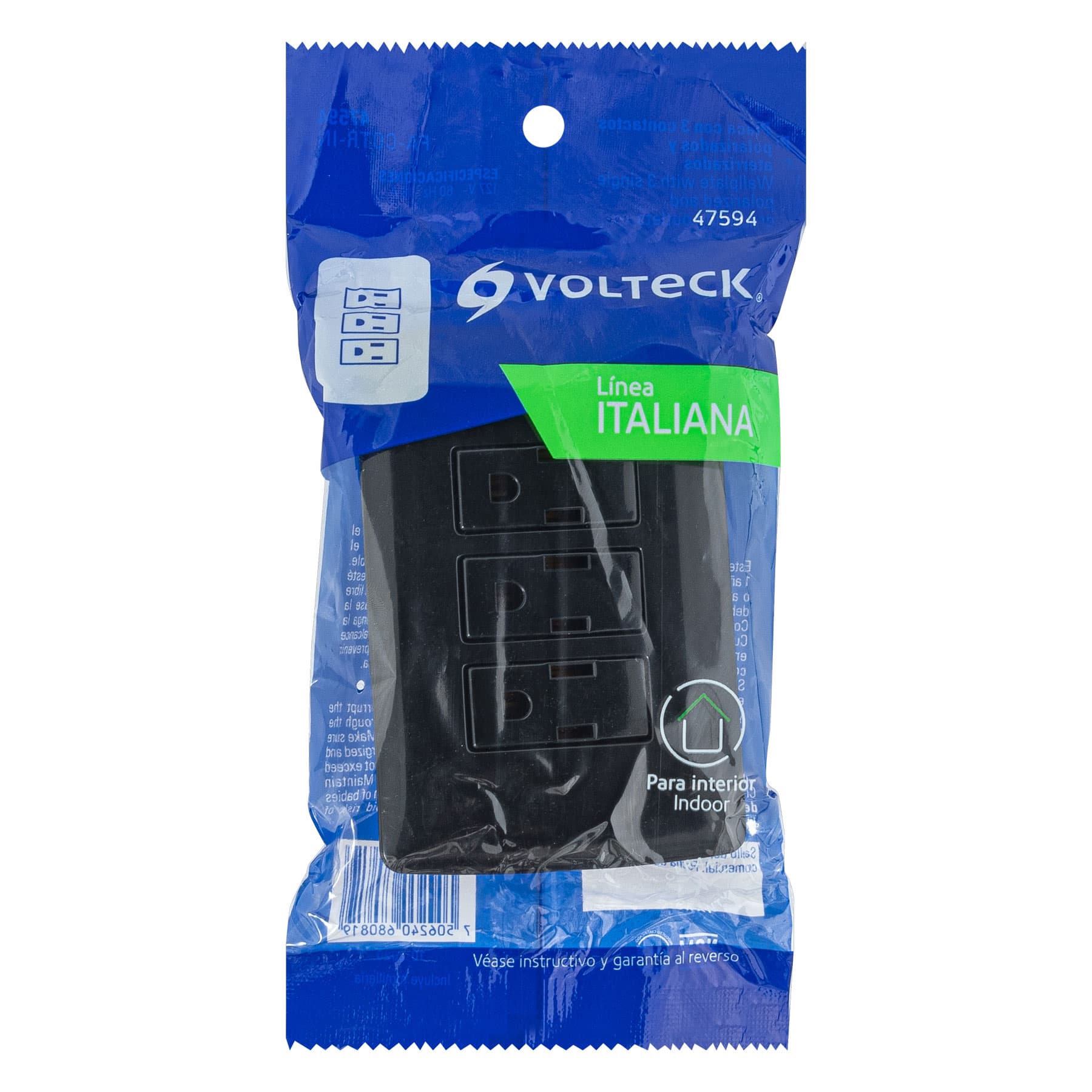 Placa armada 3 contactos aterrizados, negro, línea Italiana