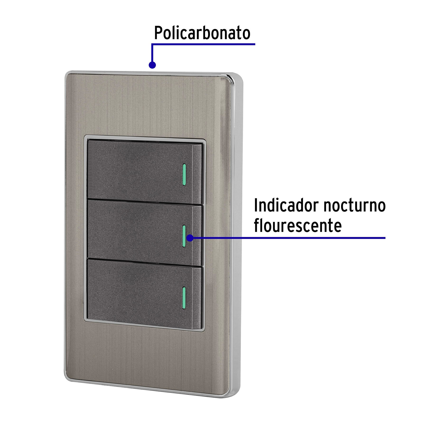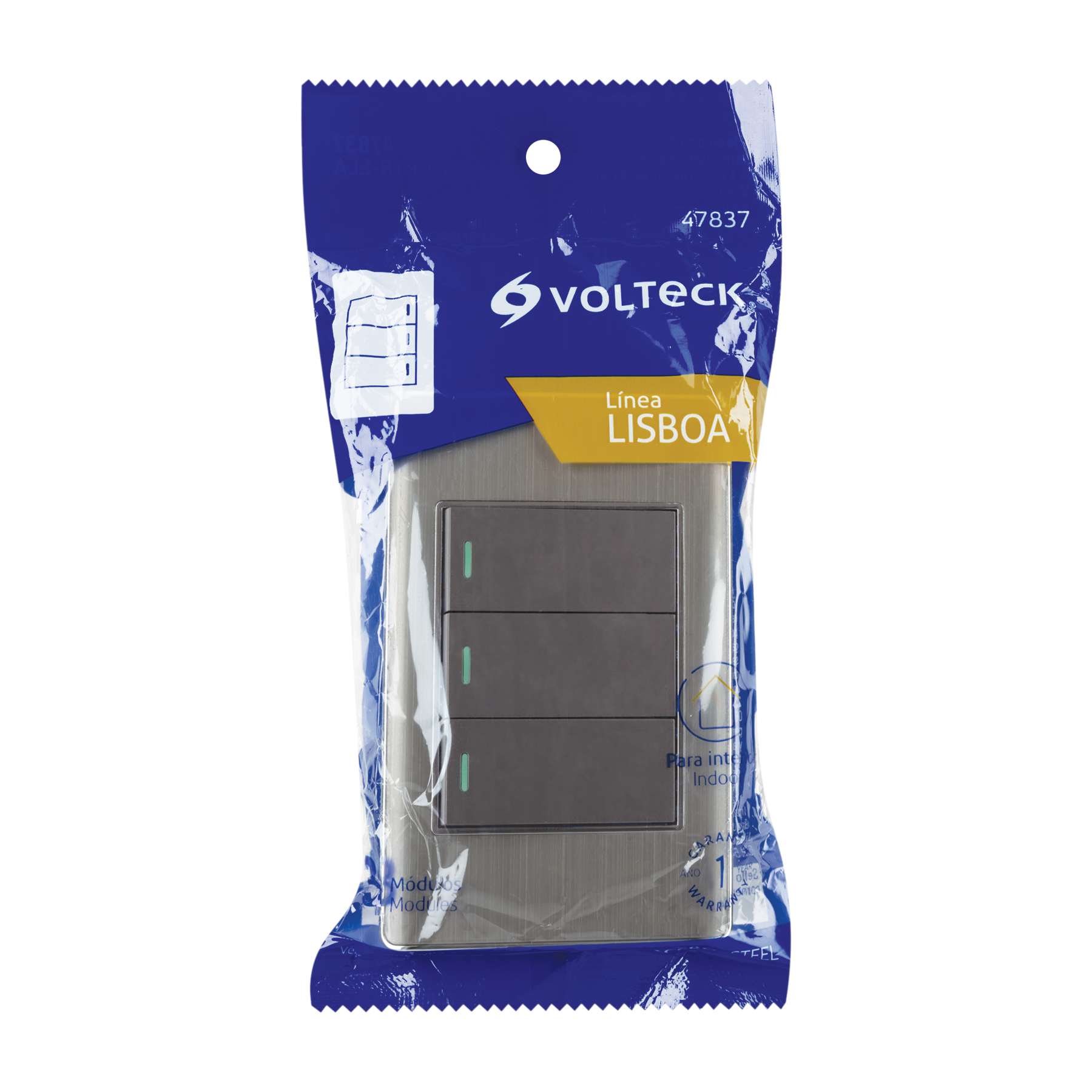 Placa armada acero 2 interruptores 1 de 3 vías 1 mód,Lisboa