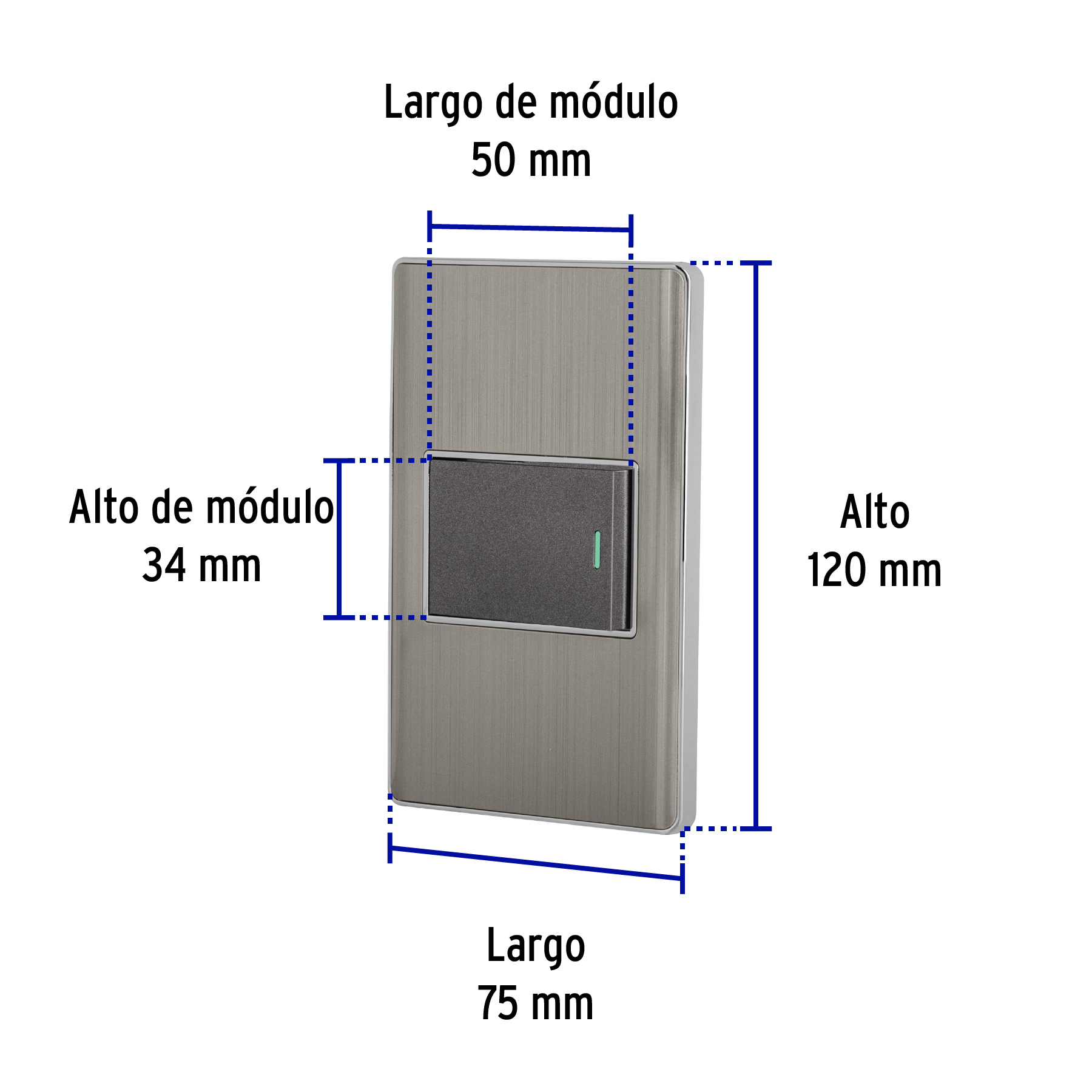 Placa armada acero inox 1 interruptor 1.5 módulos, Lisboa