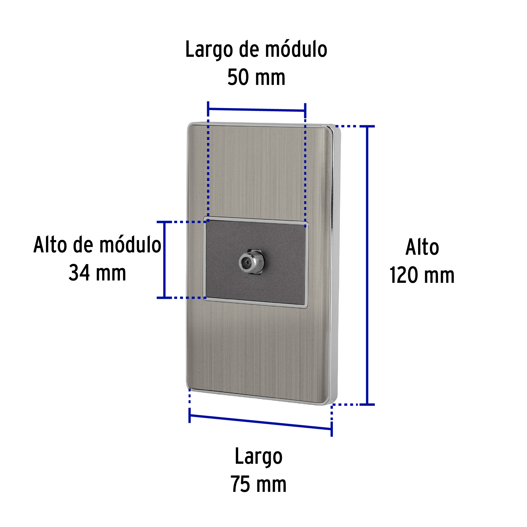 Placa armada acero inox 1 toma de TV, 1.5 módulos, Lisboa