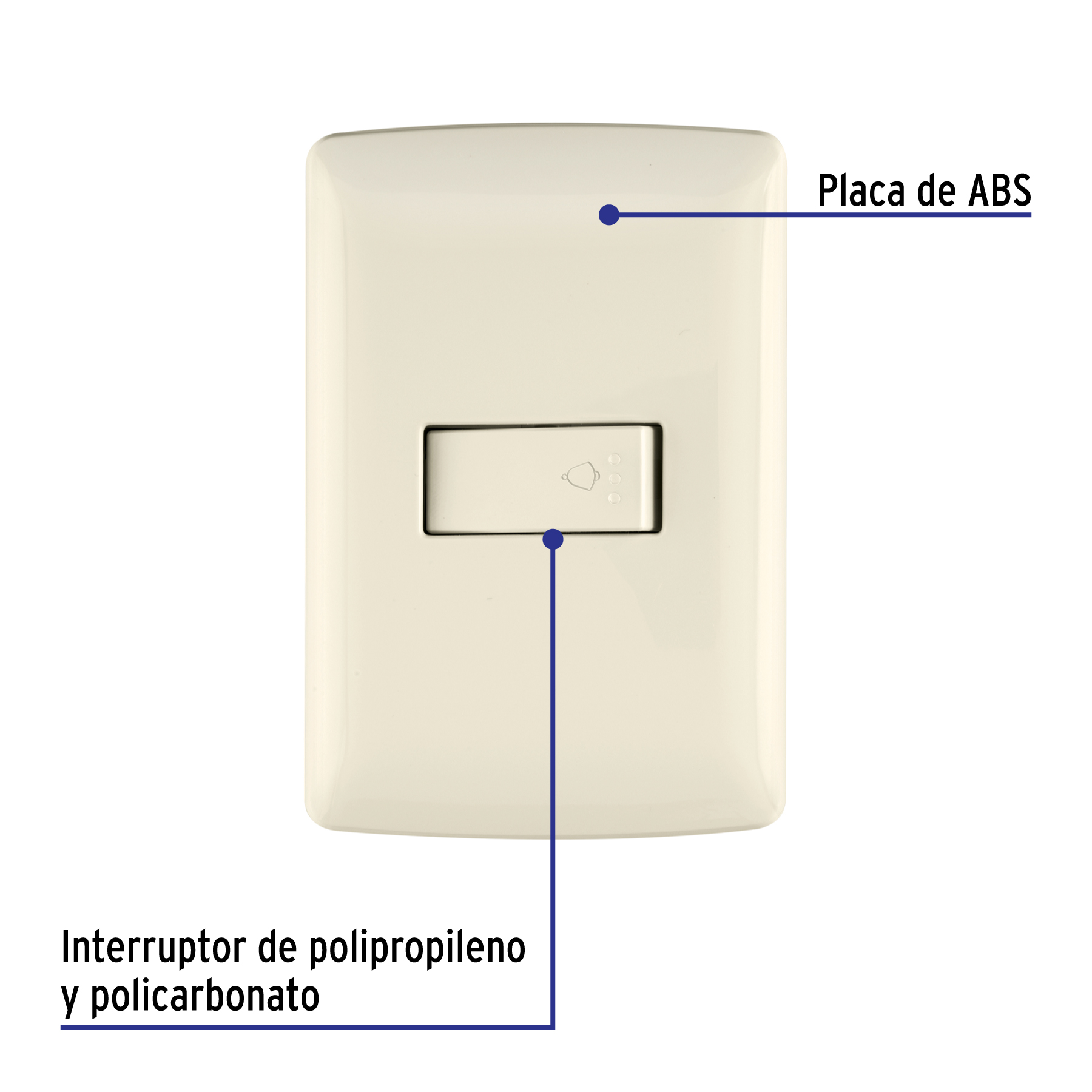 Placa armada con timbre, marfil, línea Italiana, Volteck