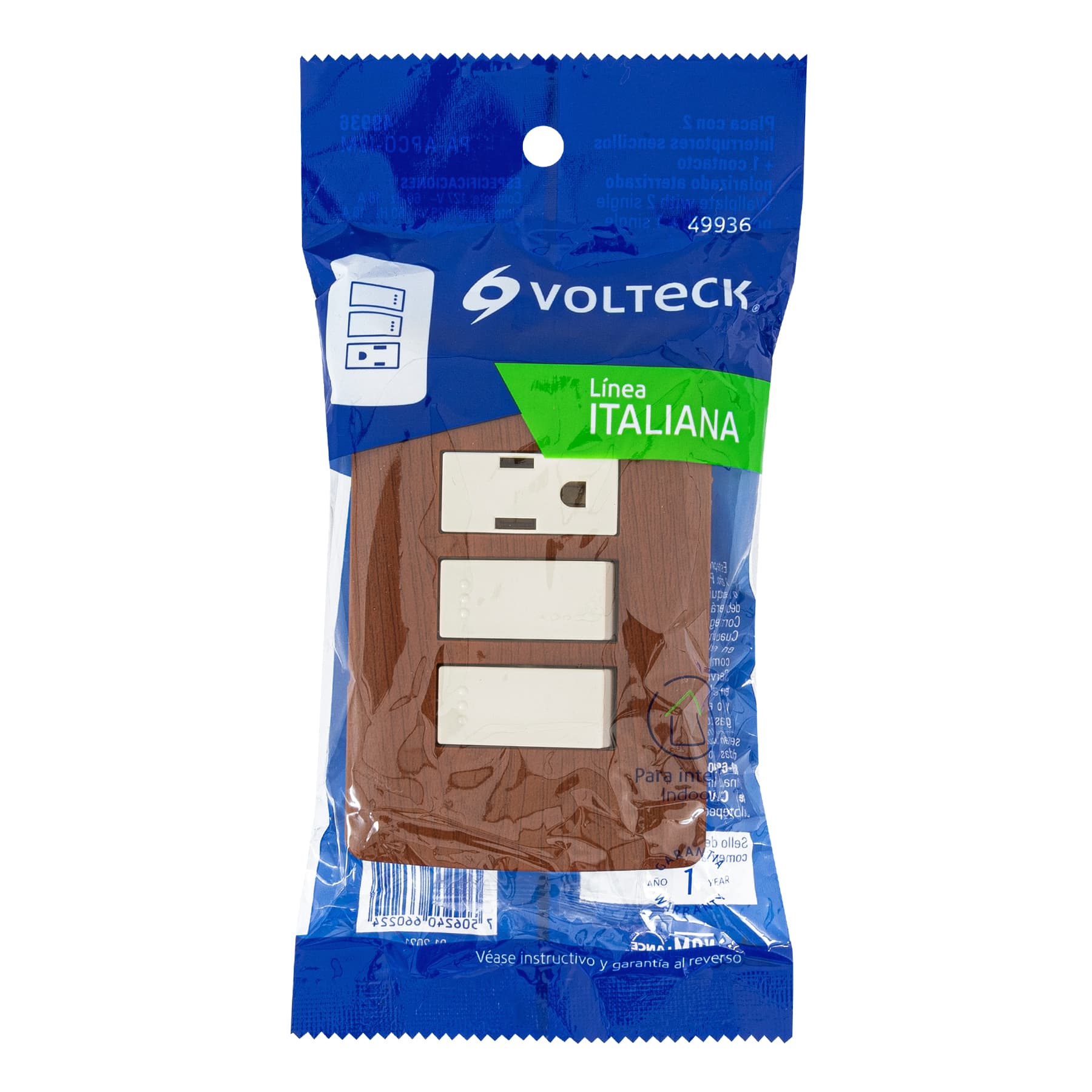 Placa armada contacto 2 interruptores,madera, línea Italiana