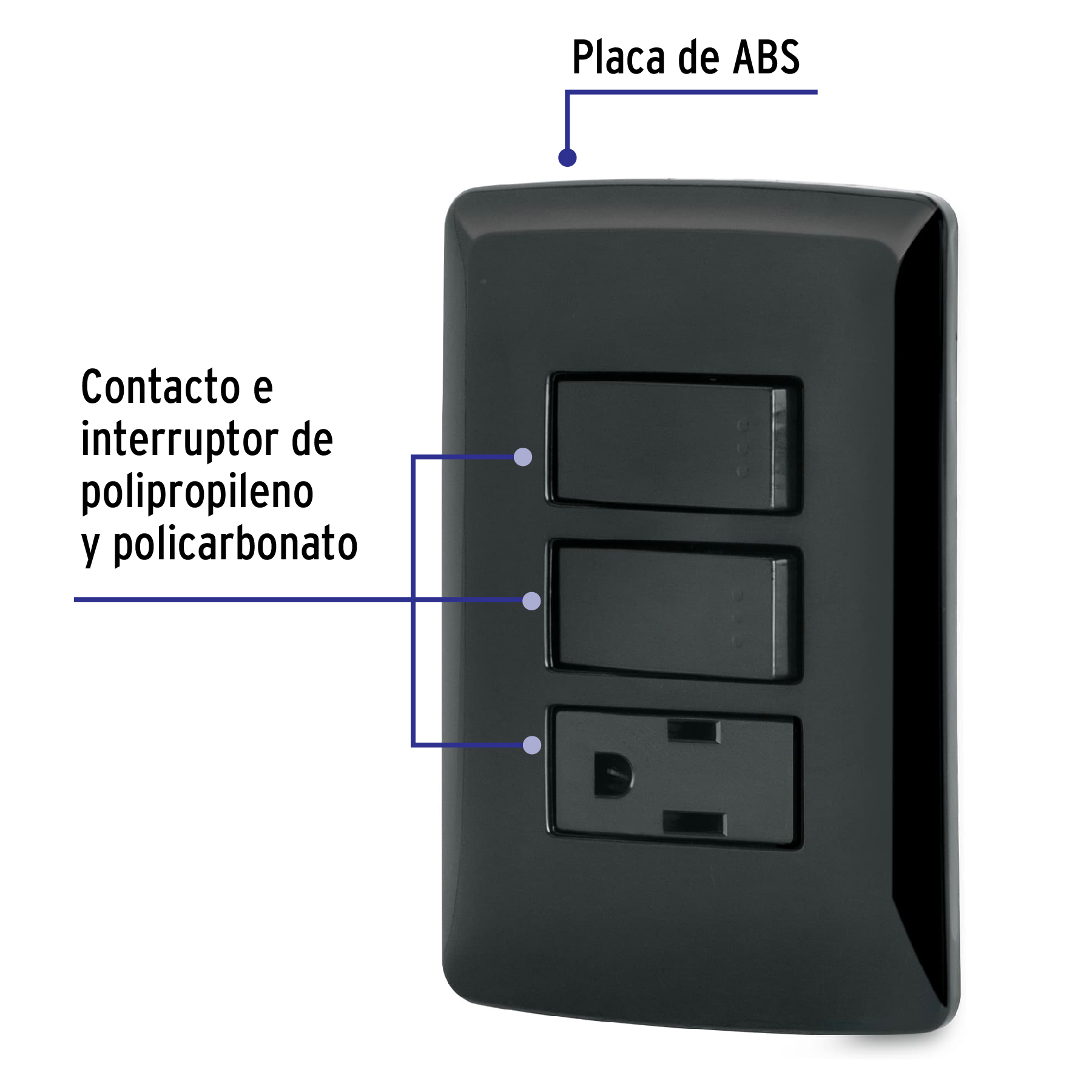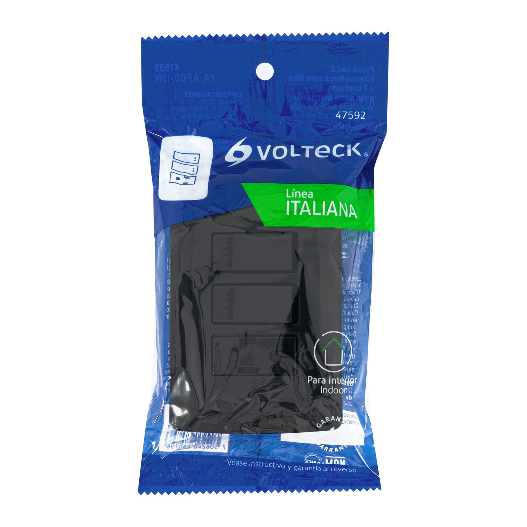 Placa armada contacto 2 interruptores,negro, línea Italiana