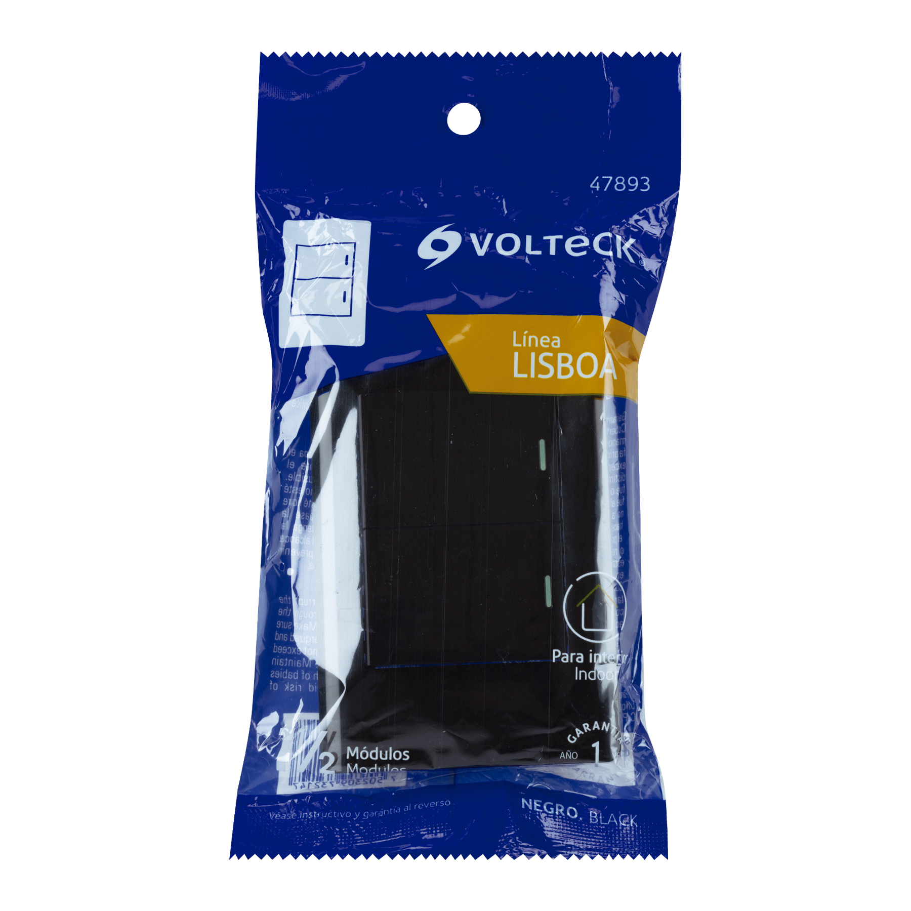 Placa armada negra 2 interruptores 1.5 módulos, Lisboa