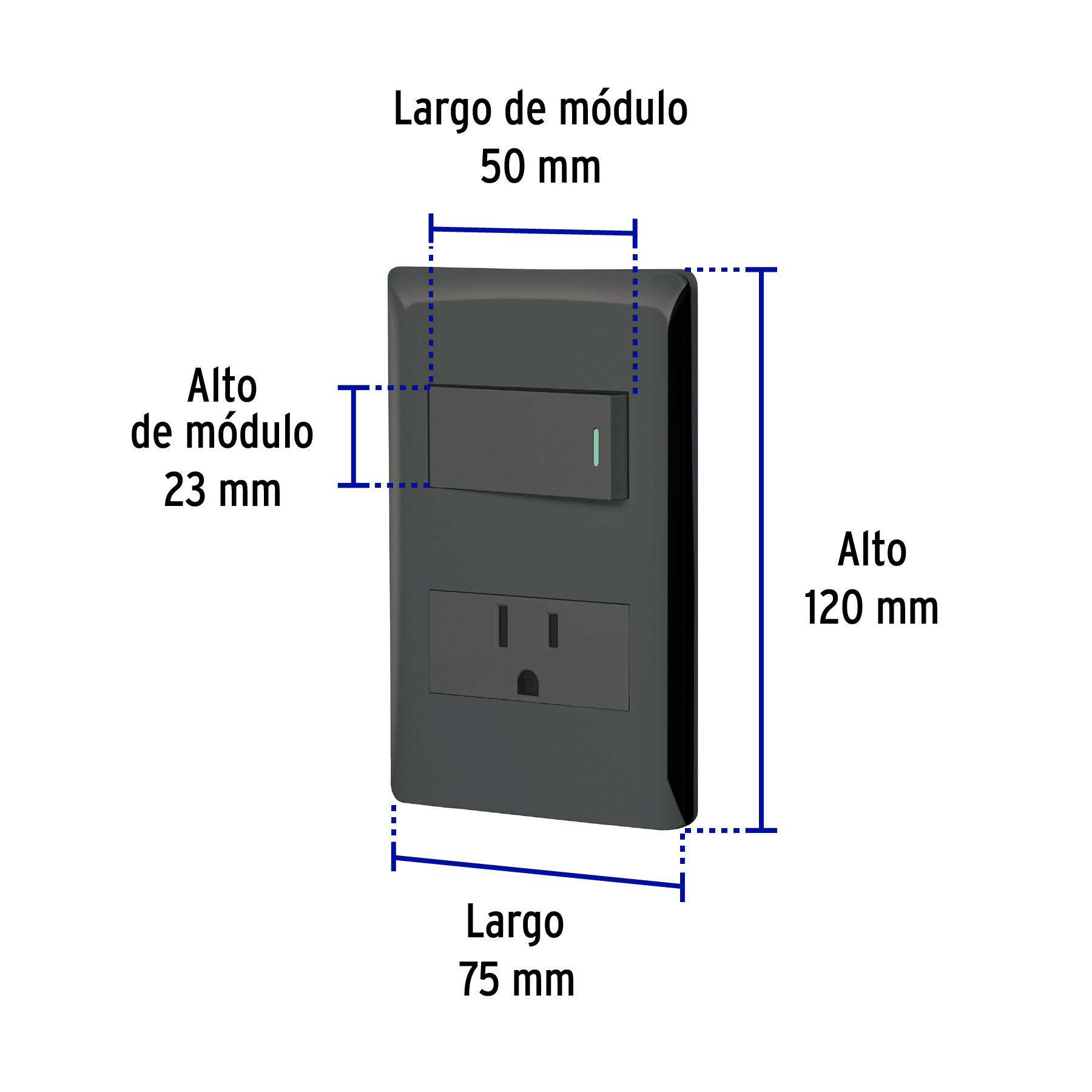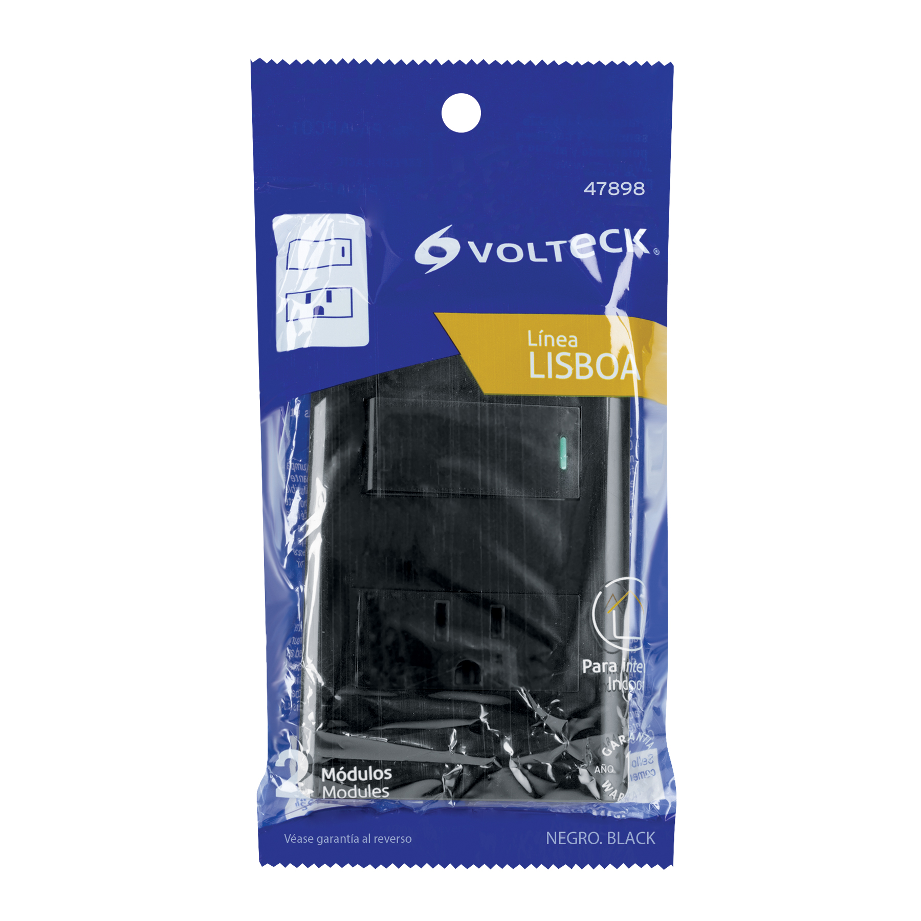 Placa armada negra interruptor y contacto 1 módulo, Lisboa