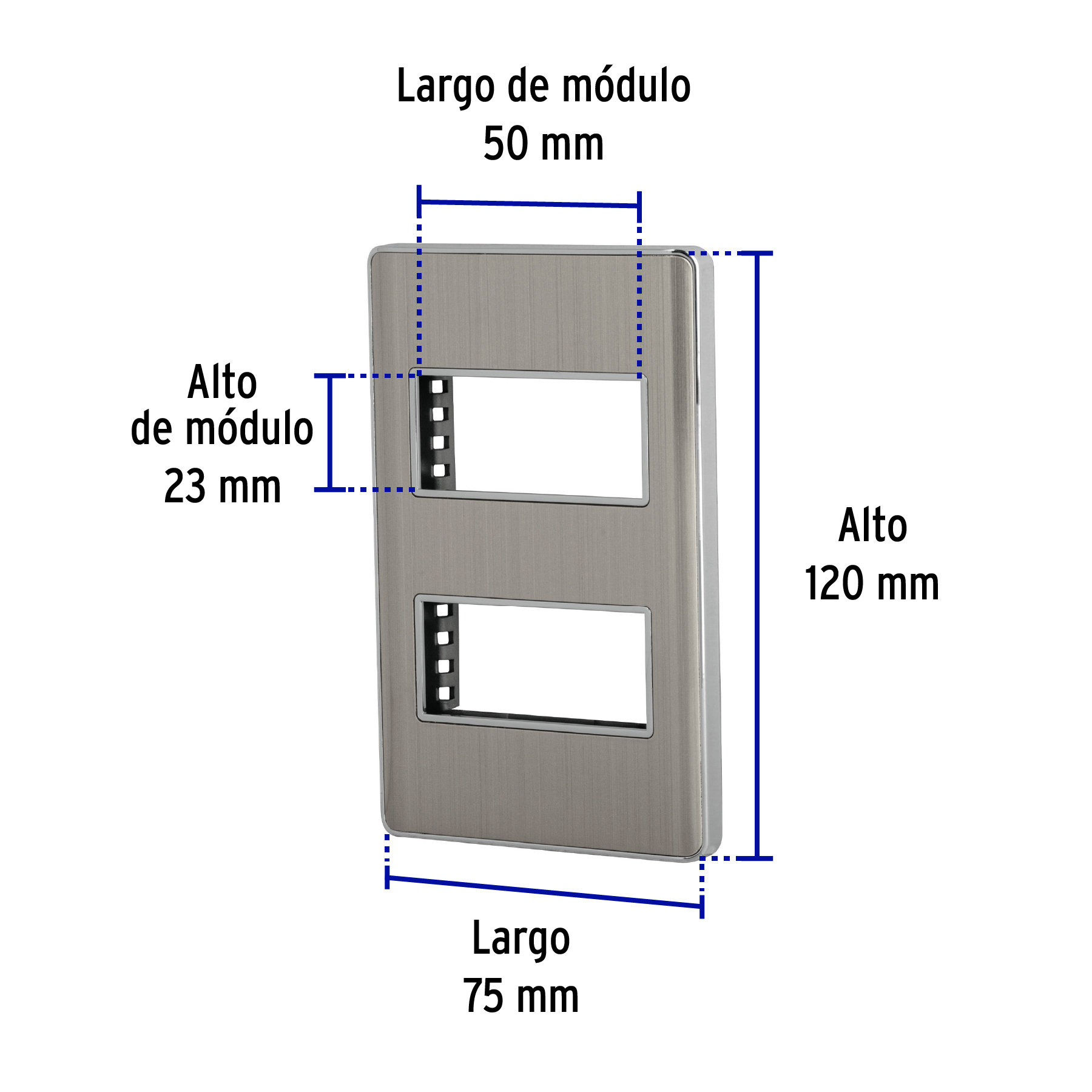 Placa de acero inox con 2 ventanas 1 módulo, línea Lisboa