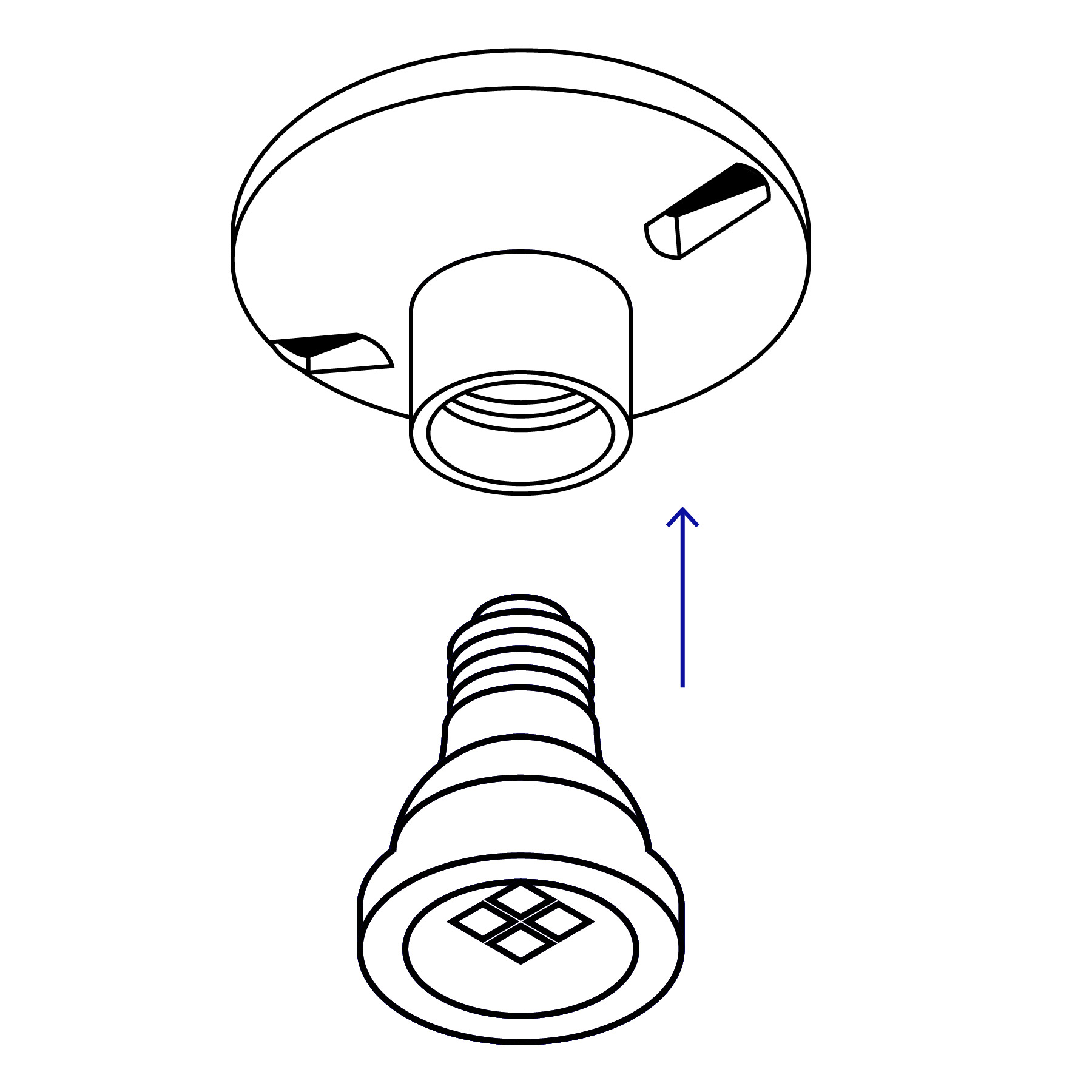 Casquillo de aluminio. De sobreponer. Cuerpo fabricado de baquelita.