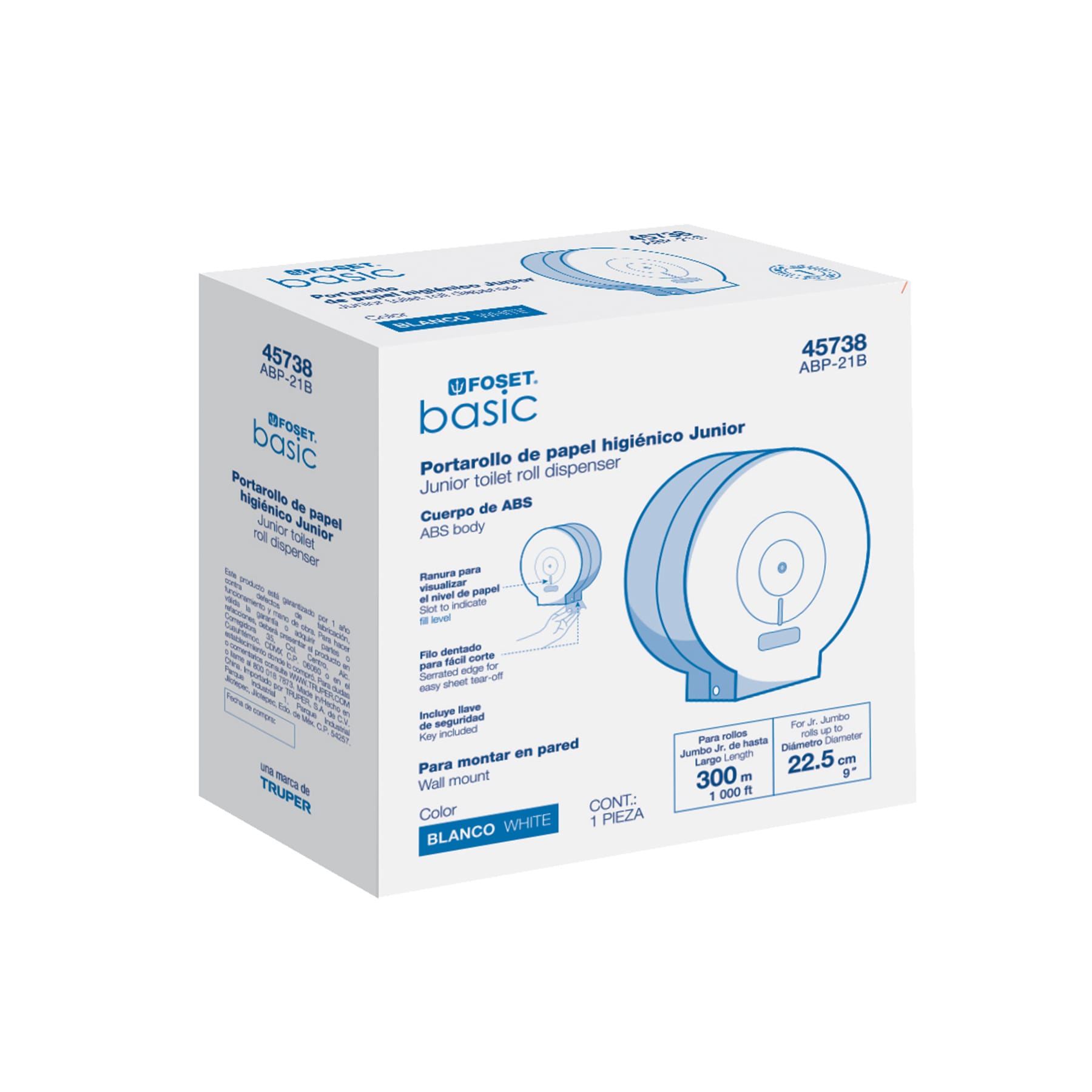 Portarollo junior de ABS, blanco, Foset Basic