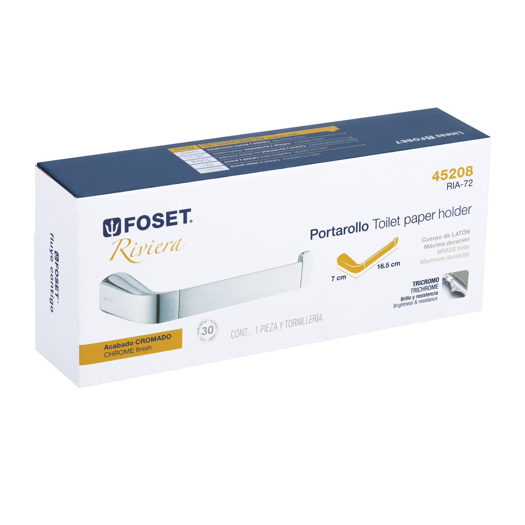 Portarrollo de latón acabado cromo, Foset Riviera