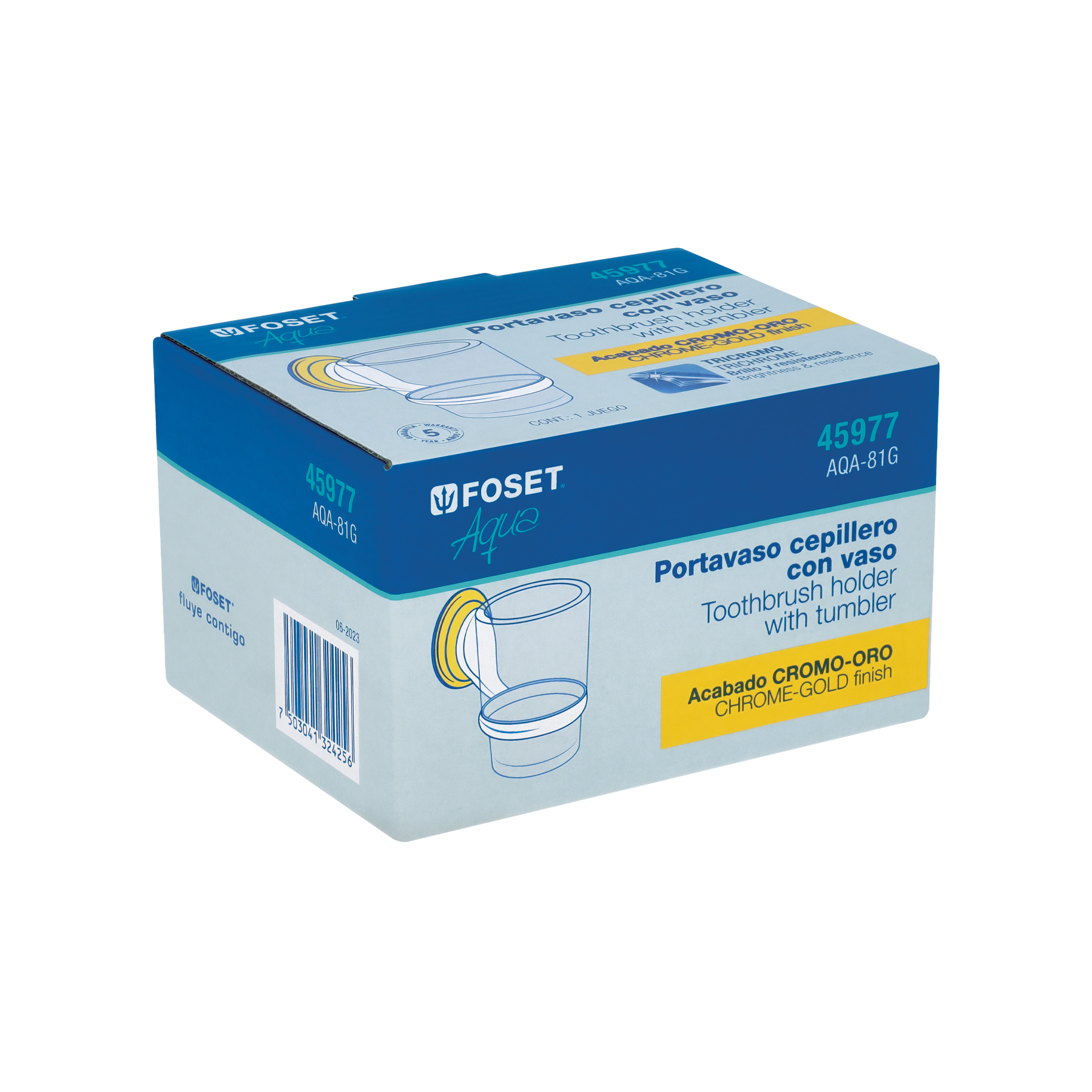Sé el primero en valorar “Portavaso cepillero cromo-oro con vaso de vidrio, Foset Aqua”