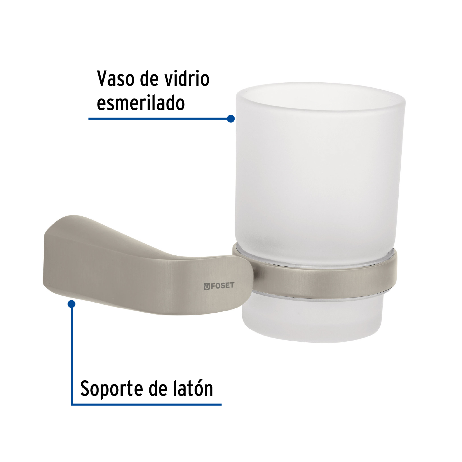 Portavaso cepillero satín con vaso de vidrio, Foset Riviera