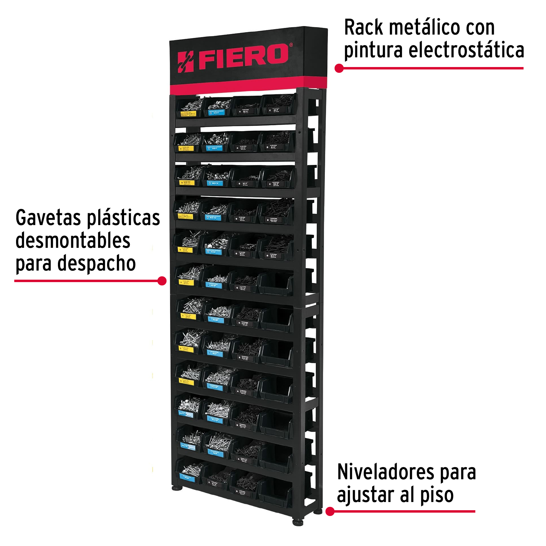 Rack modular para tornillos c/48 gavetas s/producto, FIERO