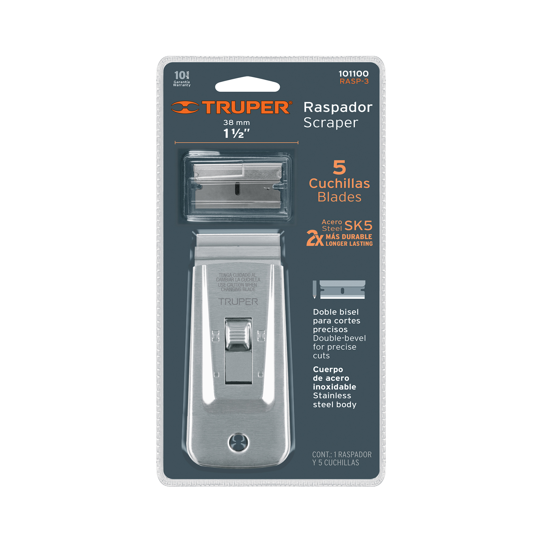 Raspador de acero inoxidable con cuchillas de 1-1/2′, TRUPER