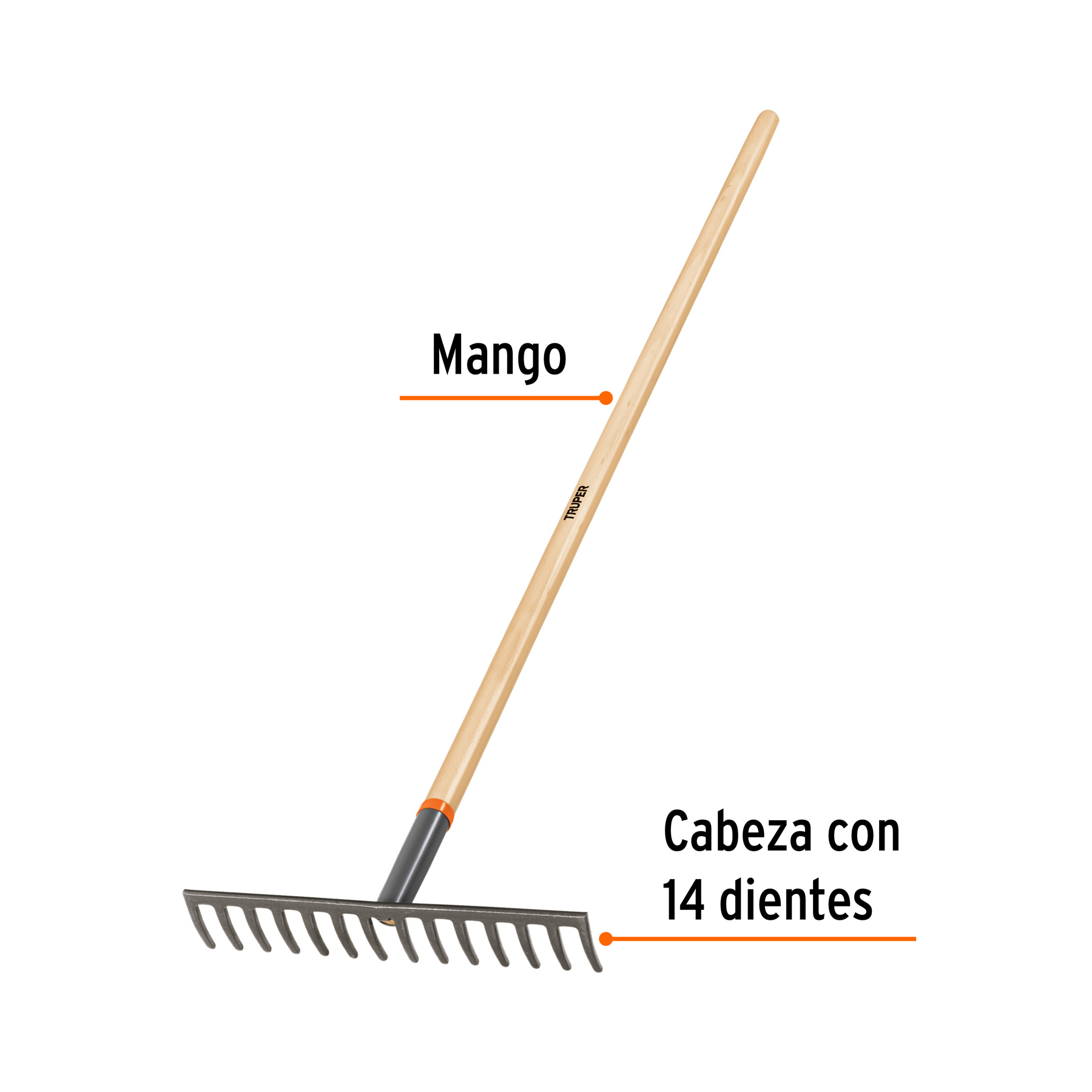 Rastrillo recto de 14 dientes, mango de 54′, Truper