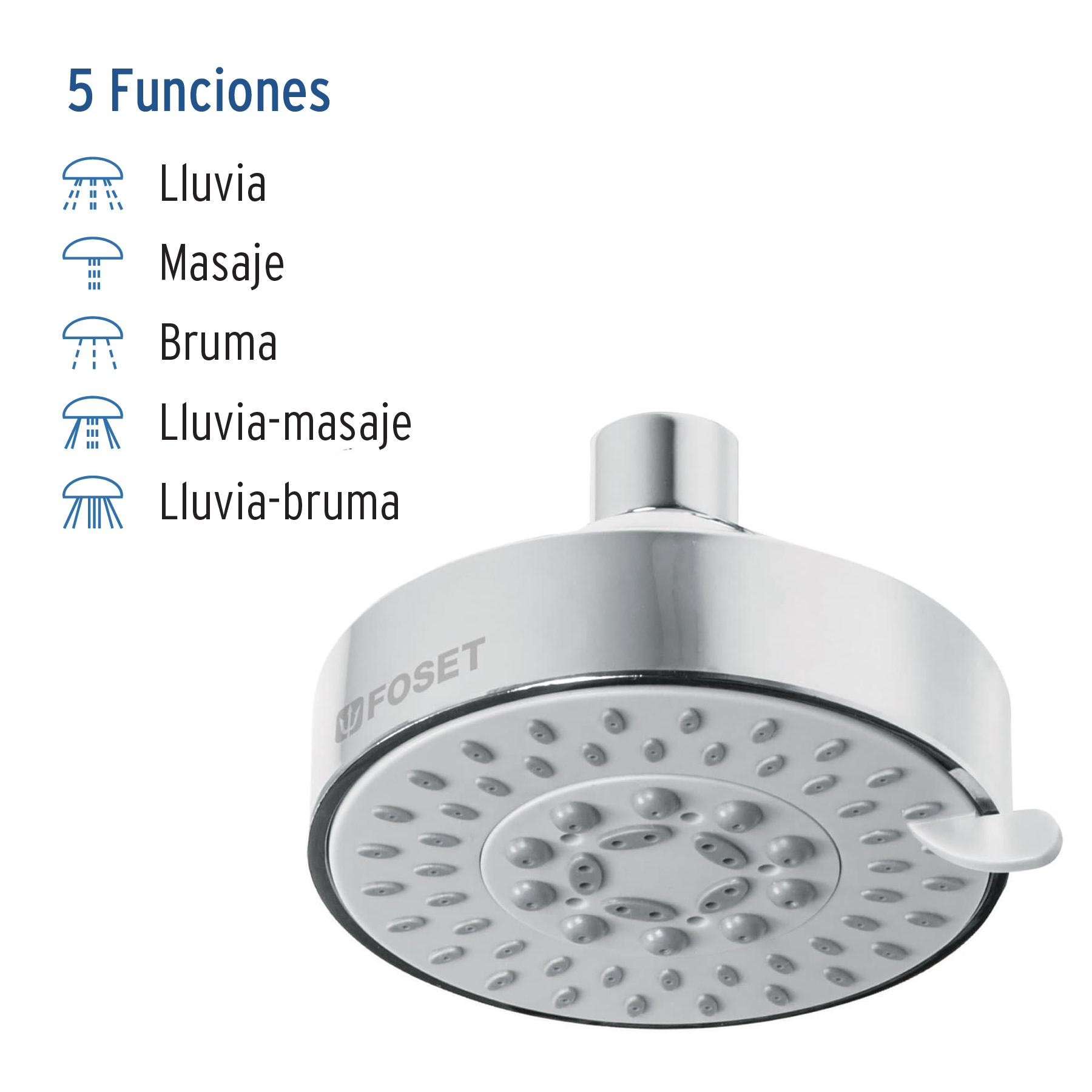 Regadera cromo 4’con 5 funciones, sin brazo, Foset Element