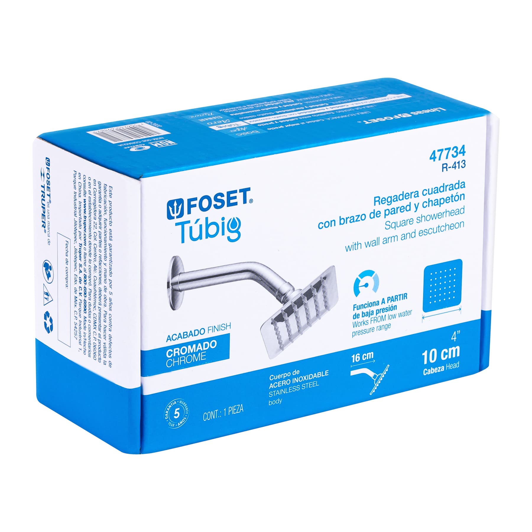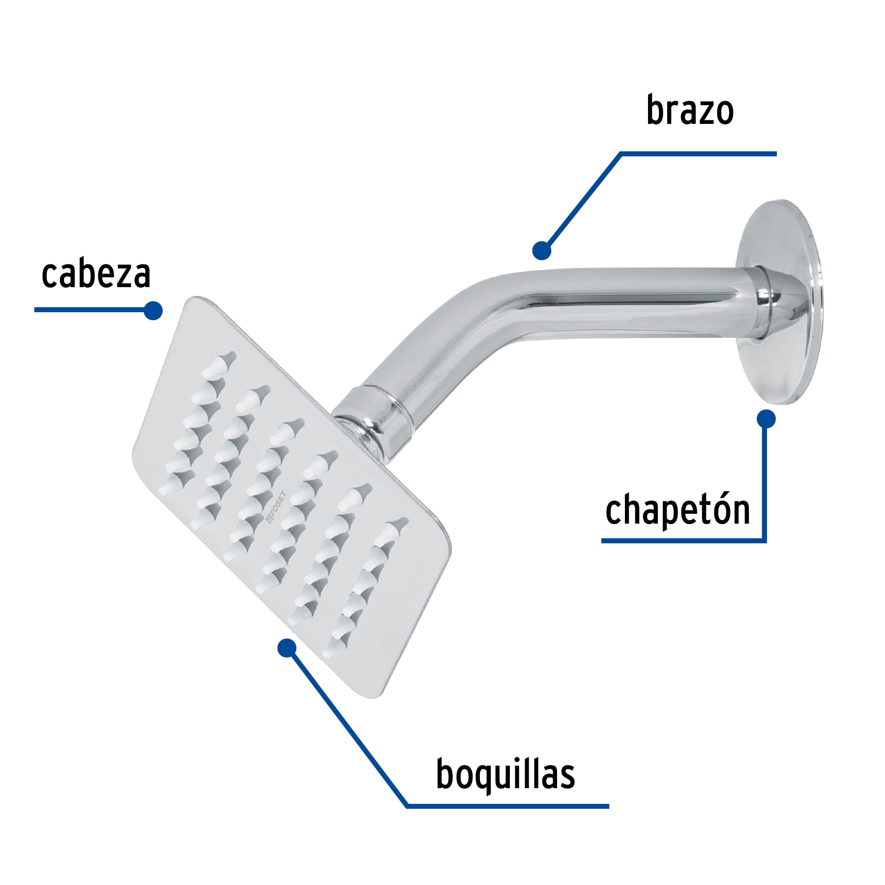 Regadera cuadrada 4′, acero inox, con brazo, cromo, Túbig