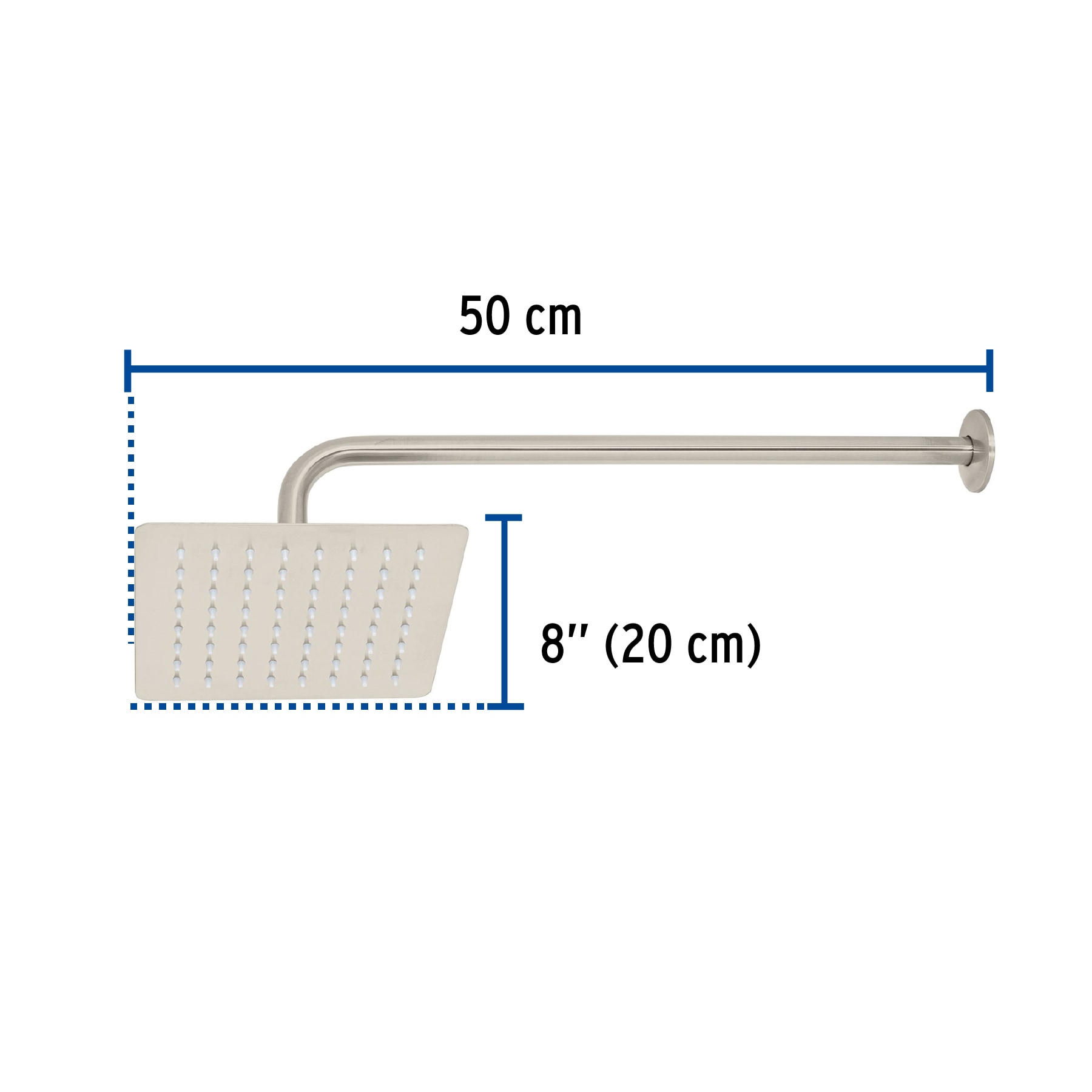Regadera cuadrada 8′, acero inox, con brazo, satín, Túbig