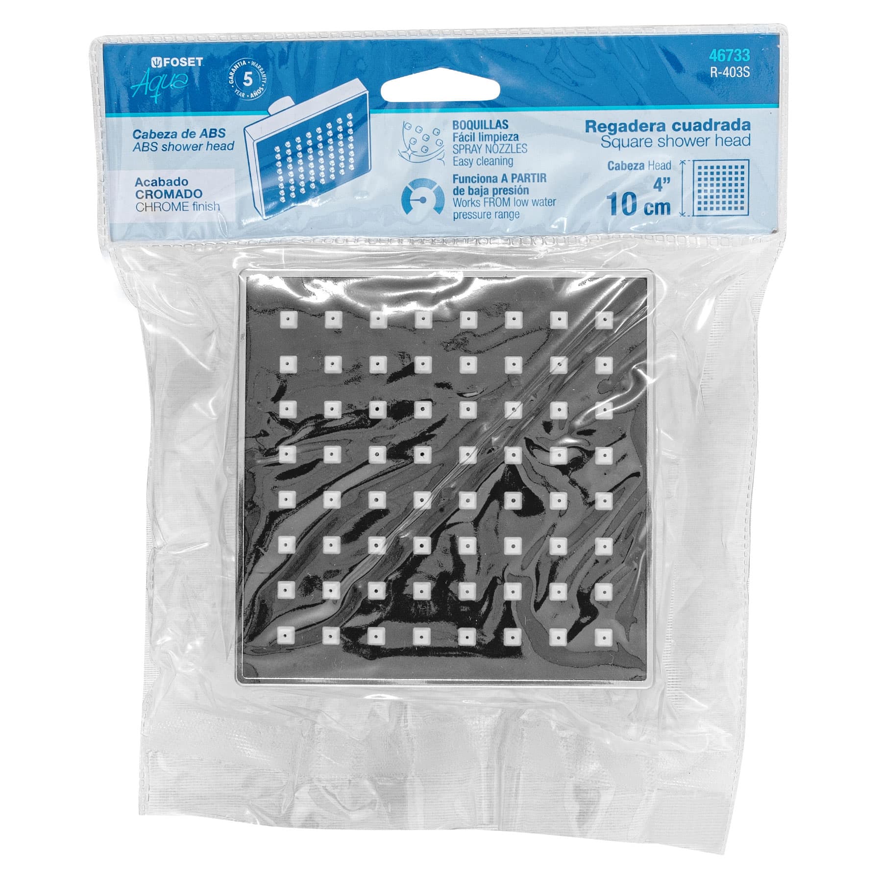 Regadera cuadrada 4′, ABS, sin brazo, cromo, AQUA