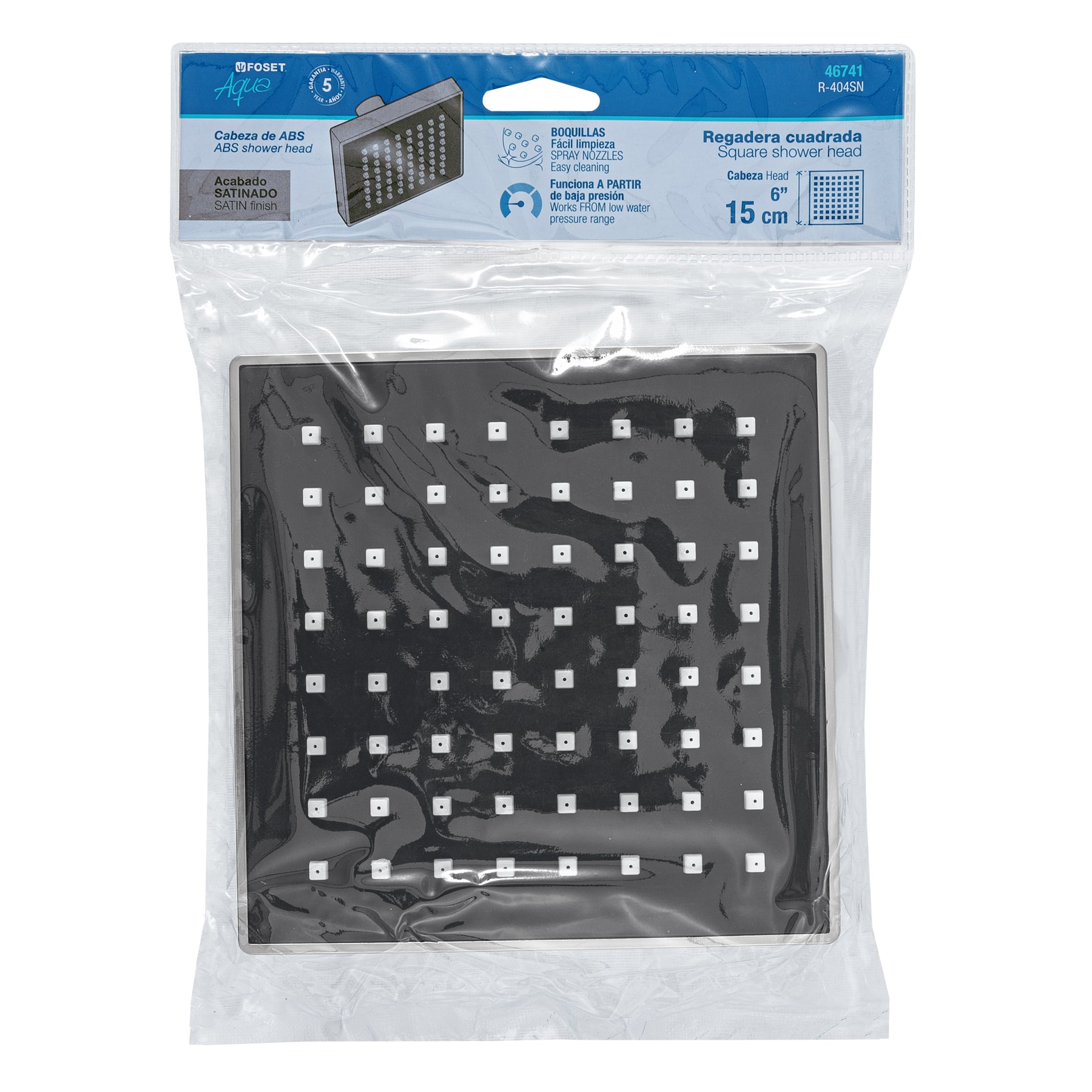 Regadera cuadrada 6′, ABS, sin brazo, satín, AQUA