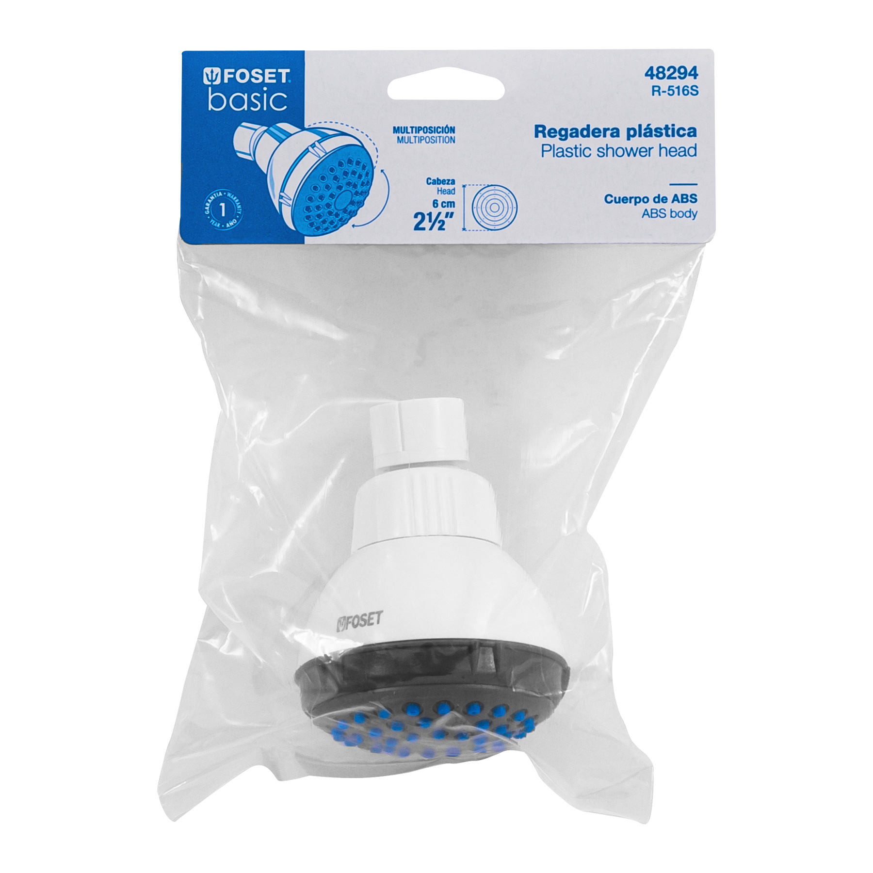 Regadera redonda de ABS 2-1/2′ gris-blanca sin brazo, Basic